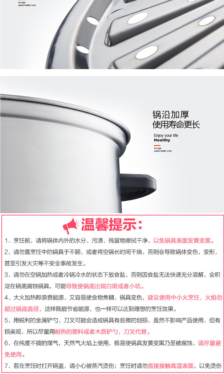 蒸的烹饪方式远比煎、炒、炸要健康的多,蒸出来的菜更易被肠胃消化,对于肠胃不好的人来说,既解决了饱腹欲,也满足了对美食的向往。既然蒸的好处这么多,买一口好的蒸锅就能过上“蒸蒸”日上的生活。这款蒸锅采用食品级不锈钢,可移动定时器,坡型导流蒸篦,一转定时创新定时蒸不错过时间,告别干蒸干烧。