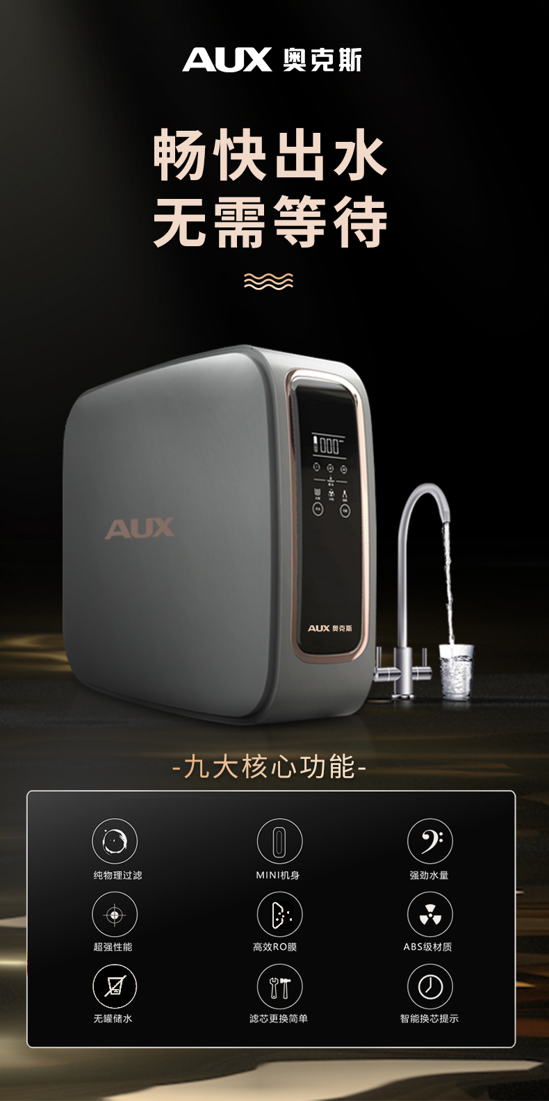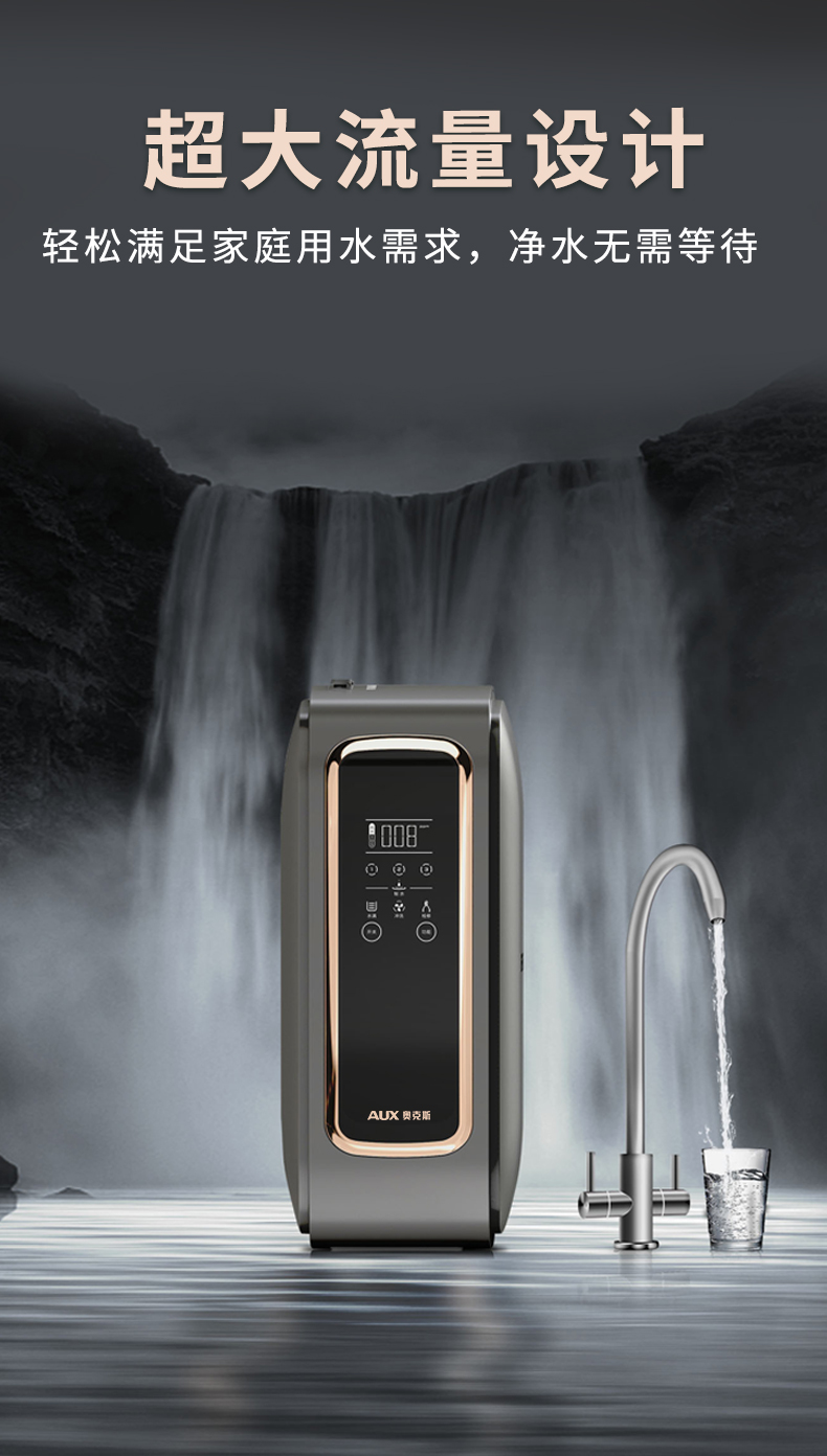 奥克斯新品澎湃大流量不带桶双出水集成水路V6反渗透纯水机