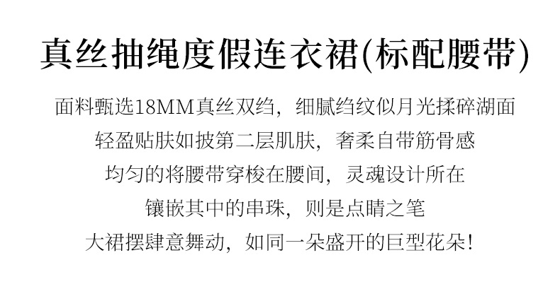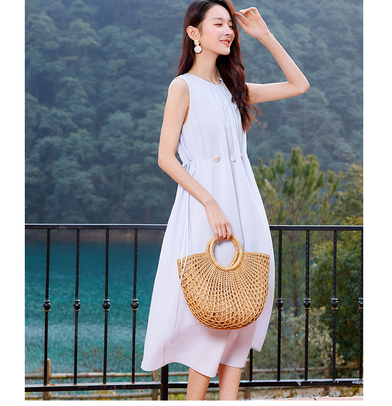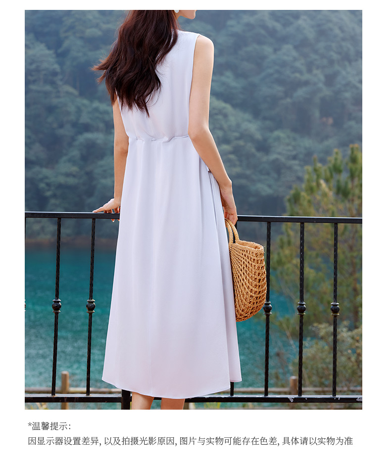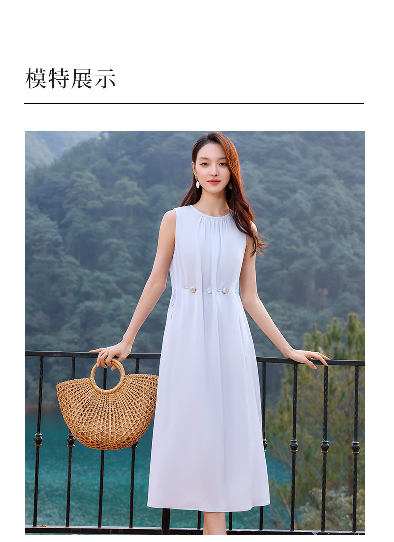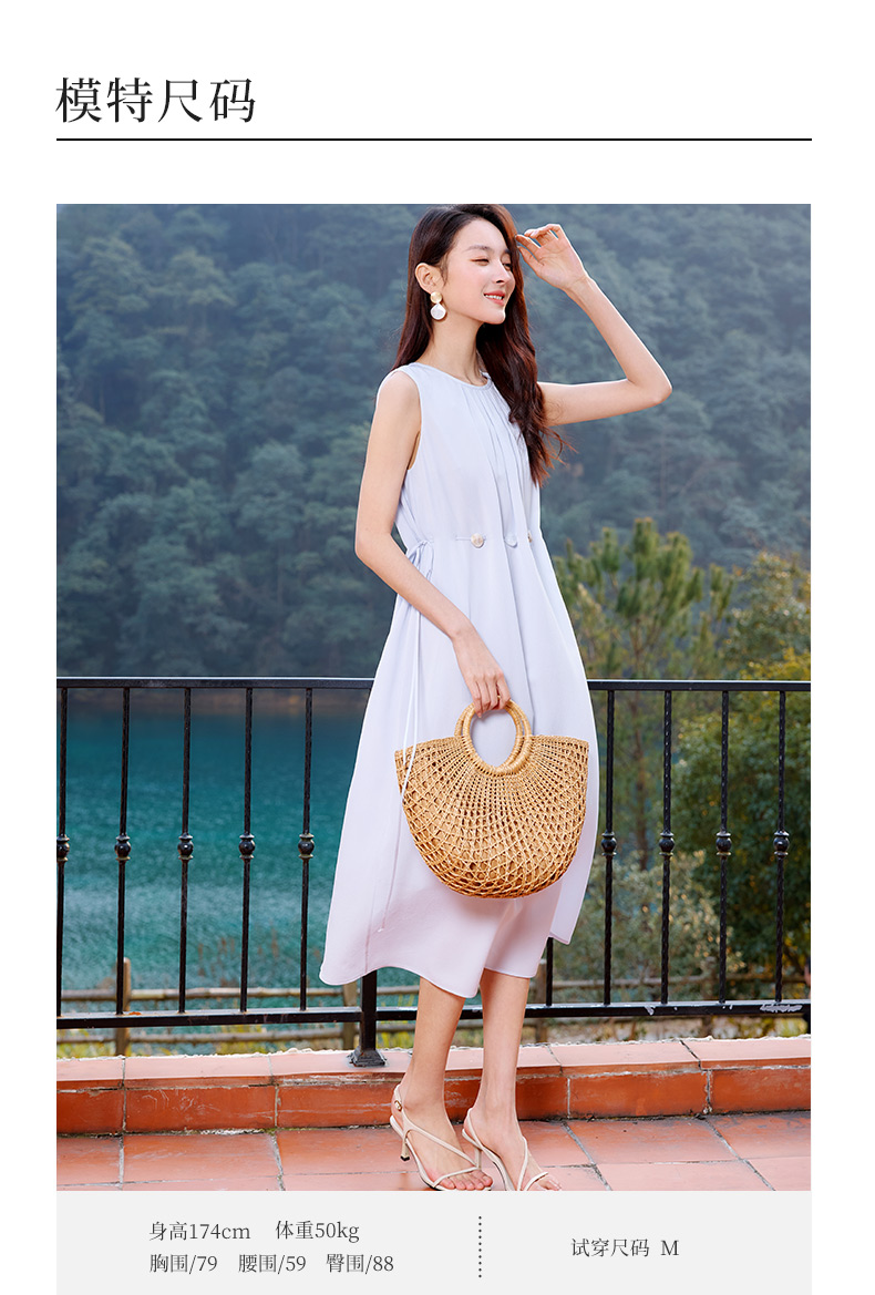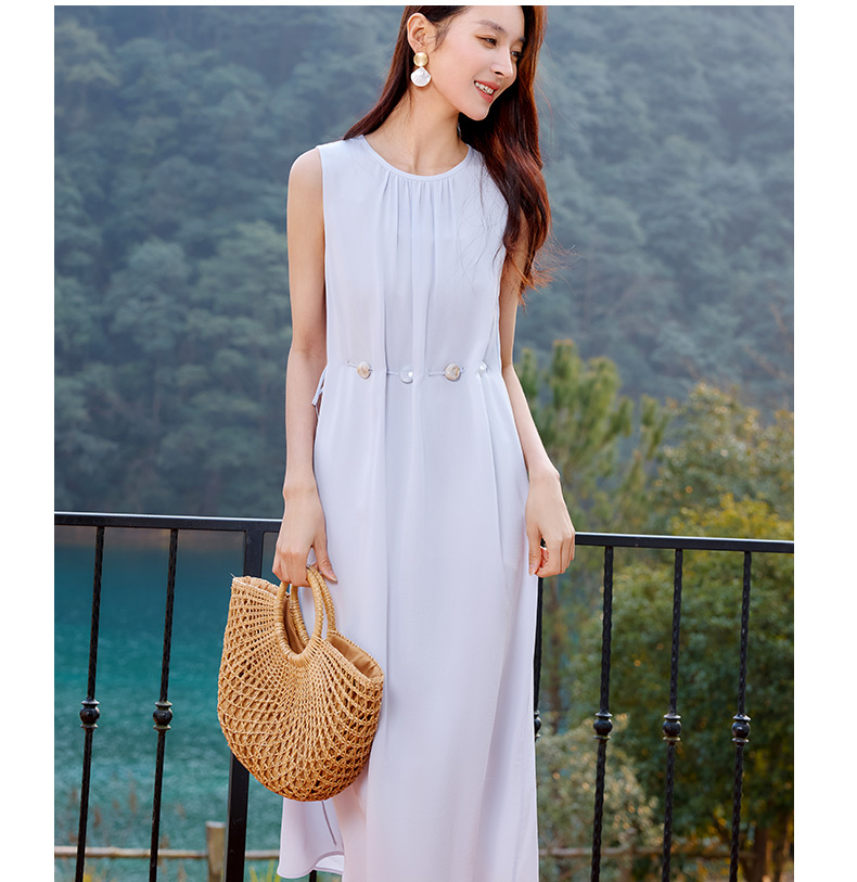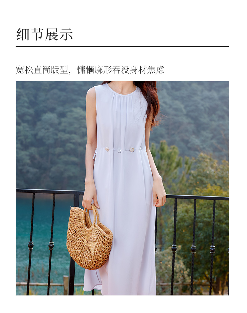 玳莎度假风抽绳收腰无袖圆领真丝长裙轻薄透气连衣裙夏季新款2025 FB35006
