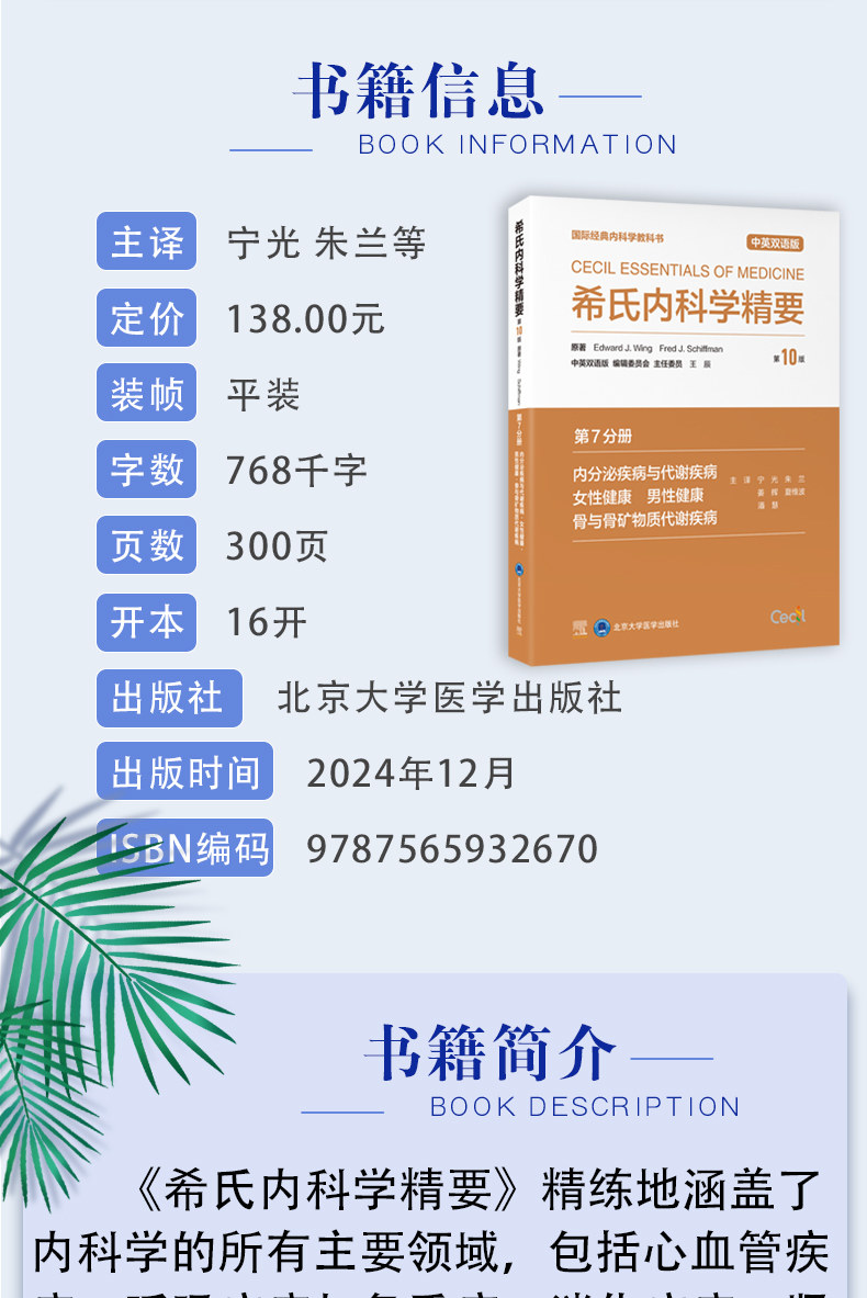 书名:希氏内科学精要(第10 版) 第7 分册 内分泌疾病与代谢疾病