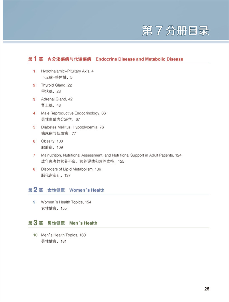 希氏内科学精要(第10版)第7分册 内分泌疾病与代谢疾病 女性健康 男性健康 骨与骨矿物质代谢疾病