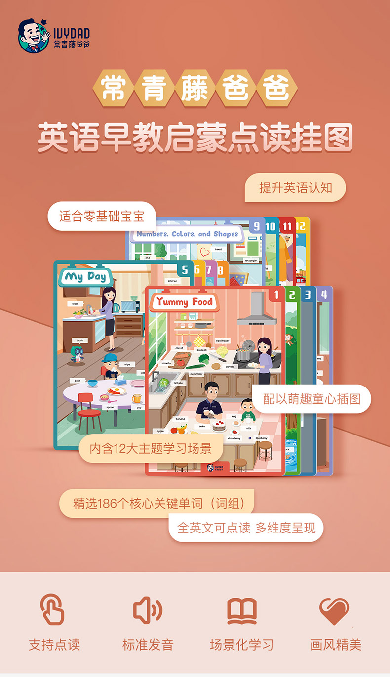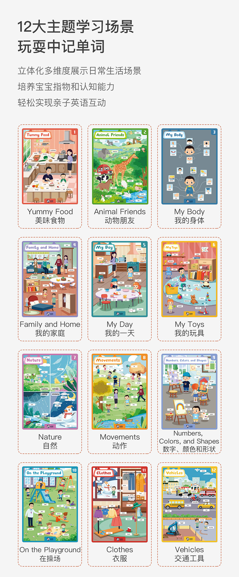【12张】常小吖英语早教启蒙点读挂图,选词生活化,精准匹配宝宝日常
