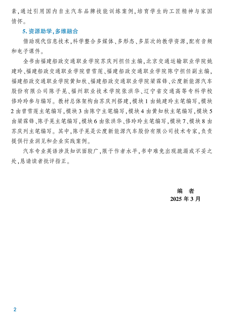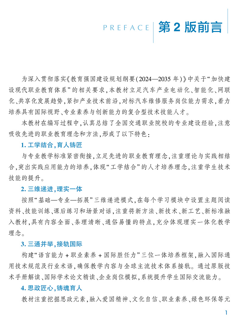 本书是职业教育汽车类专业教材。全书共分为8个模块,包括汽车维修概述、发动机、底盘、电控系统、汽车电器、汽车安全与舒适系统、新能源汽车和智能网联汽车。本书可作为职业院校汽车类专业的教学用书,也可作为汽车专业相关技术人员的培训用书。本书配有课件,教师可通过加入;汽车高职教学研讨群(QQ:64428474)获取资源。