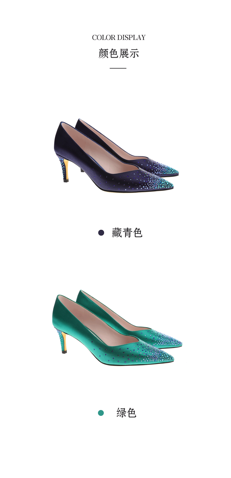 sheme新中式《千里江山》系列商务经典渐变水晶烫钻高跟尖头单鞋可定制