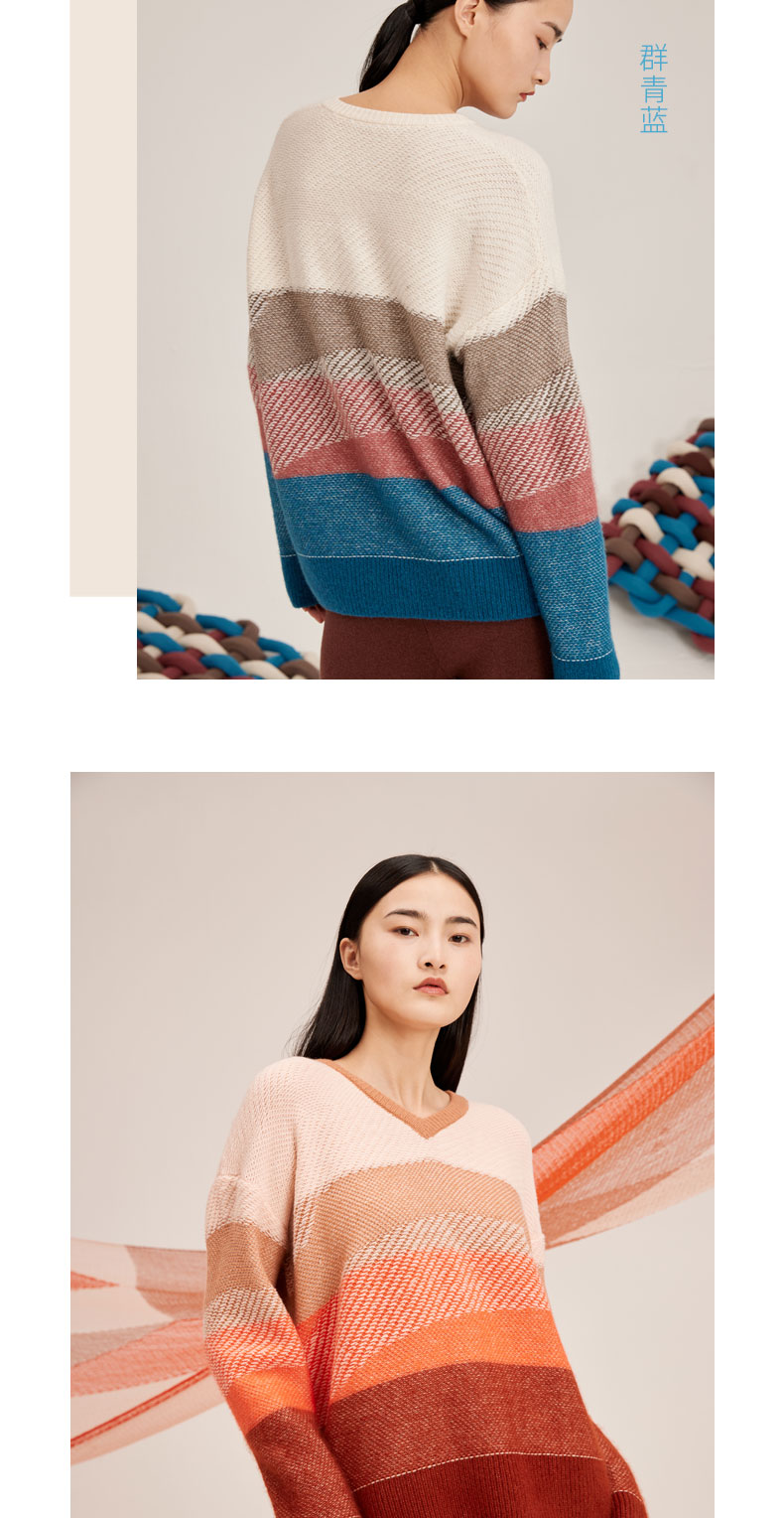 羊绒桑蚕丝V领宽松女套衫