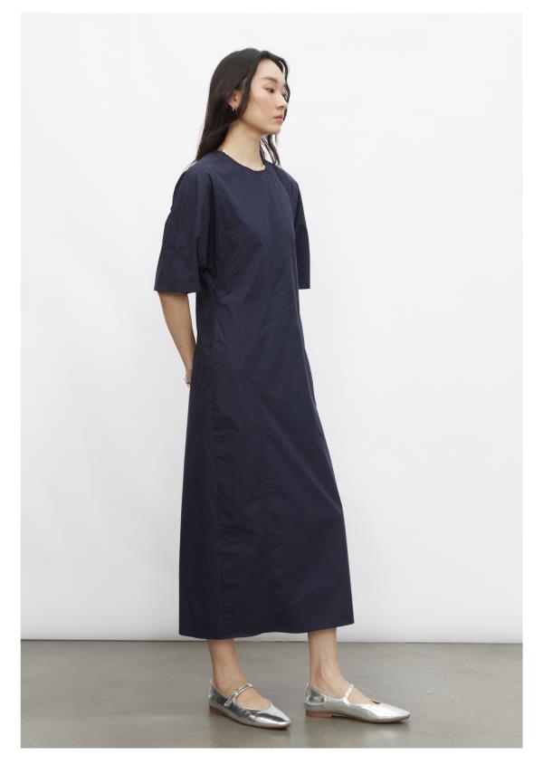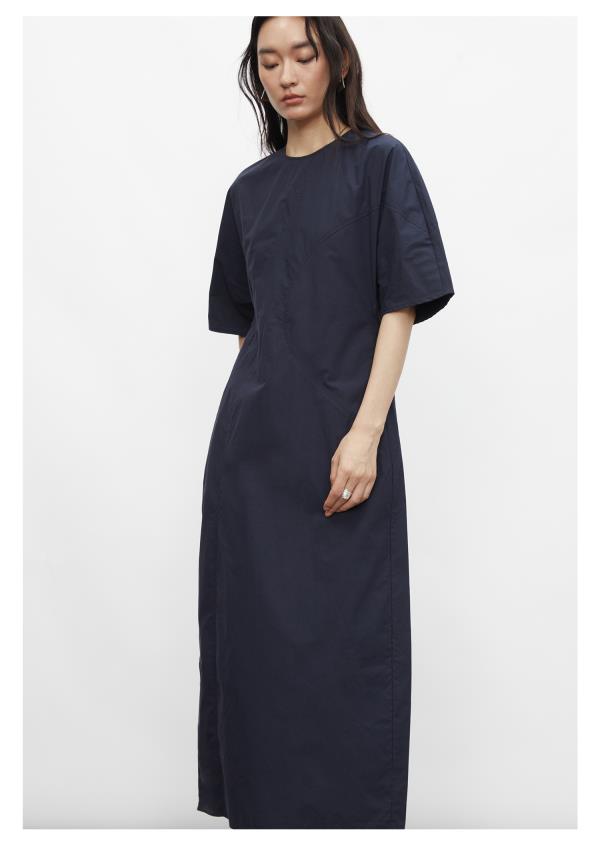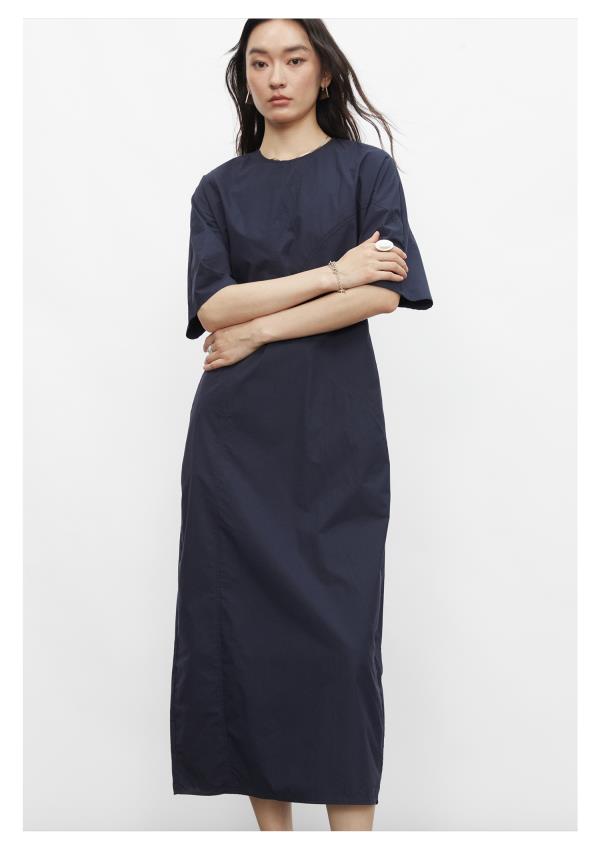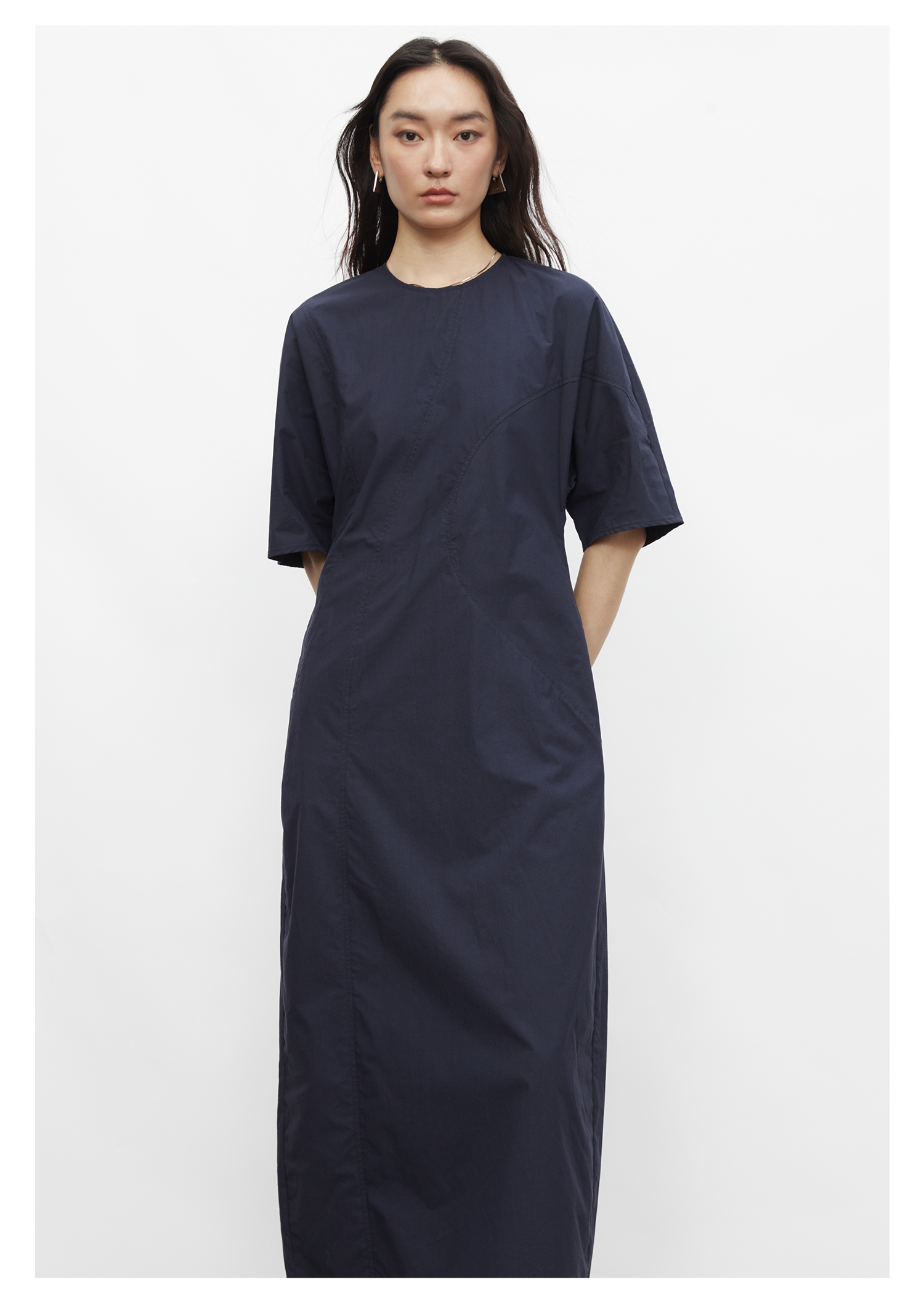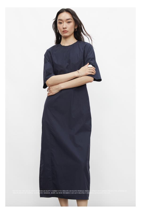 棉仓3431516023-IACHOE立体剪裁宽松版型显瘦不规则收腰连衣裙中长款