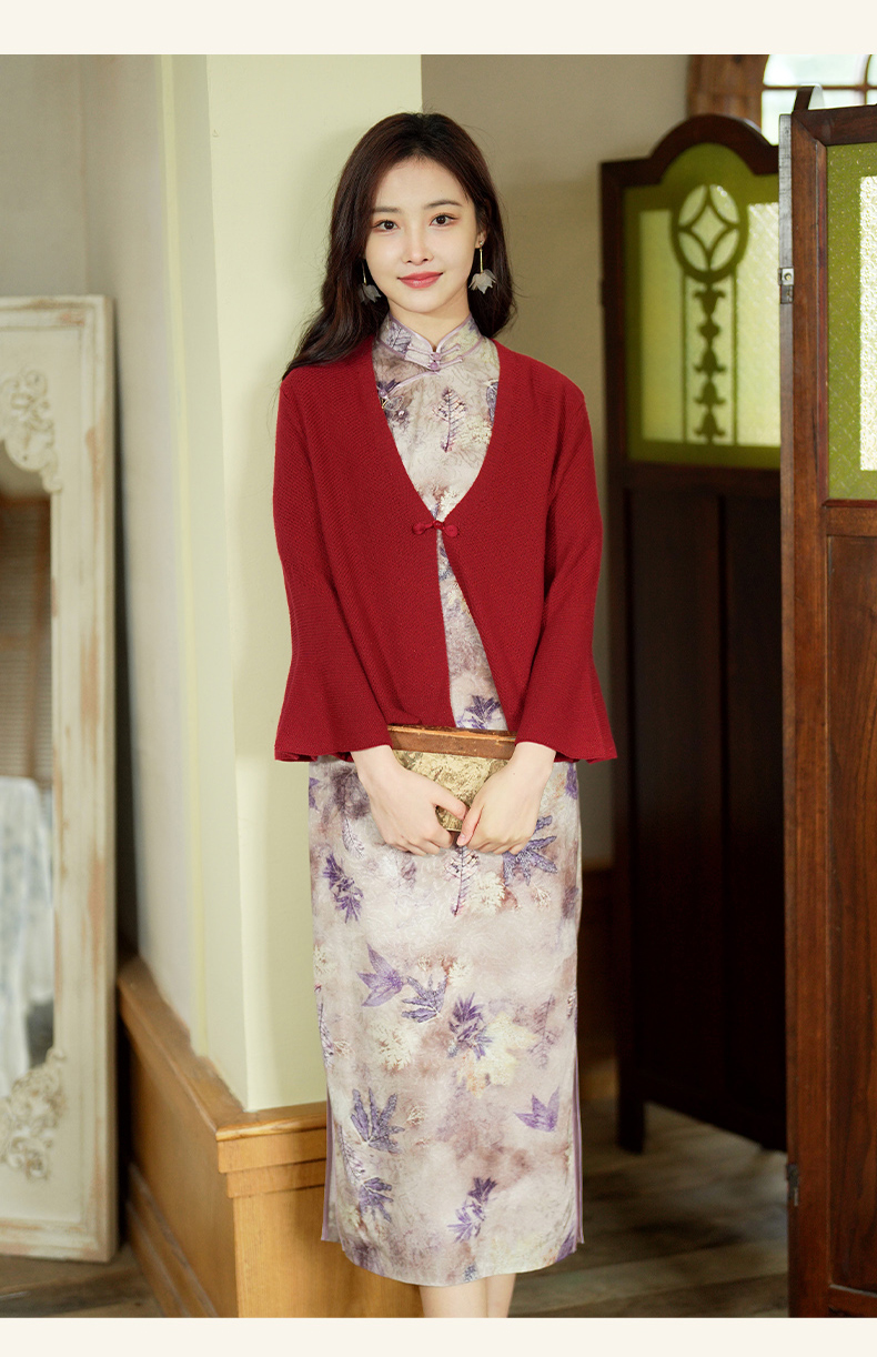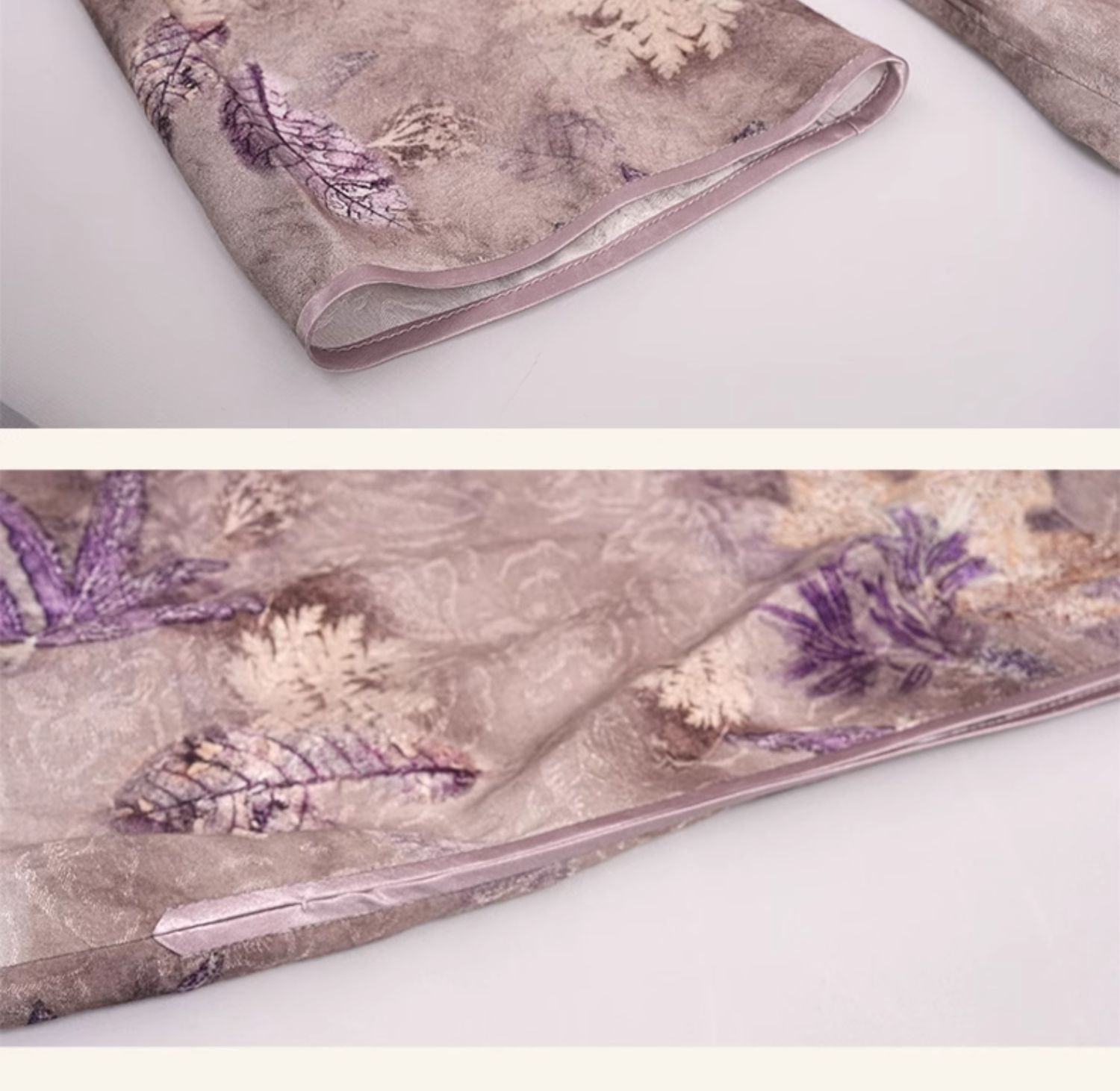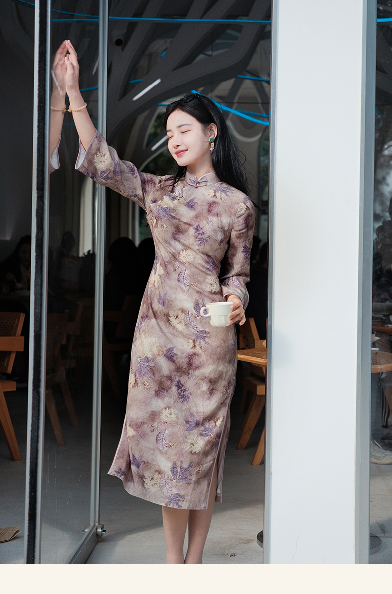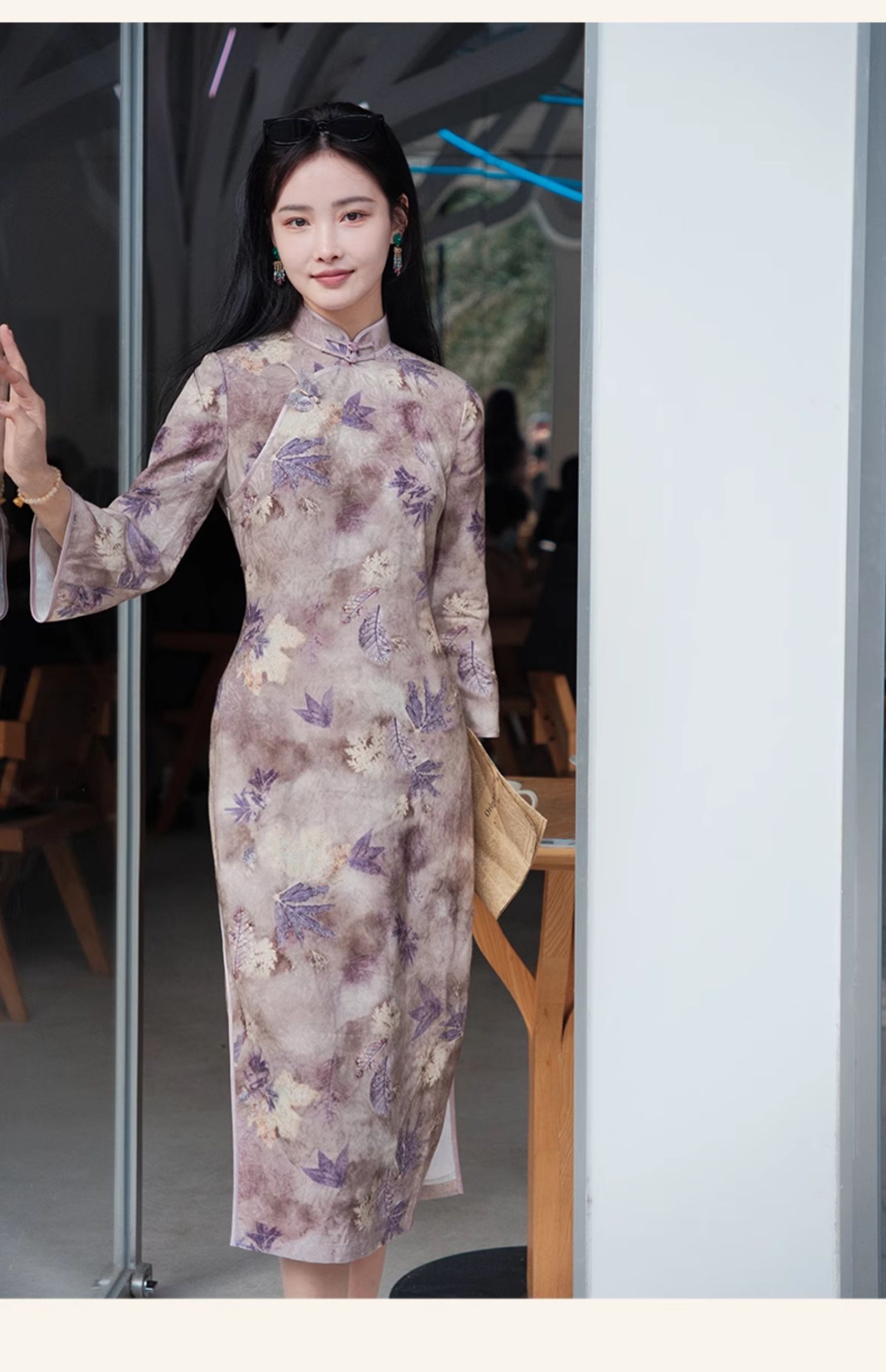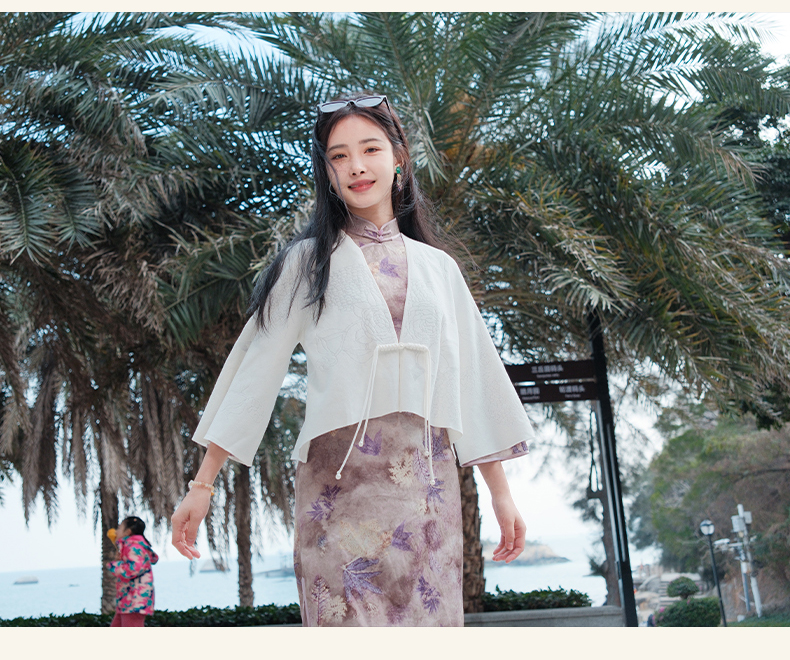 上海逸红颜叶芝2025夏季新款棉麻感提花微喇袖中长款旗袍连衣裙女