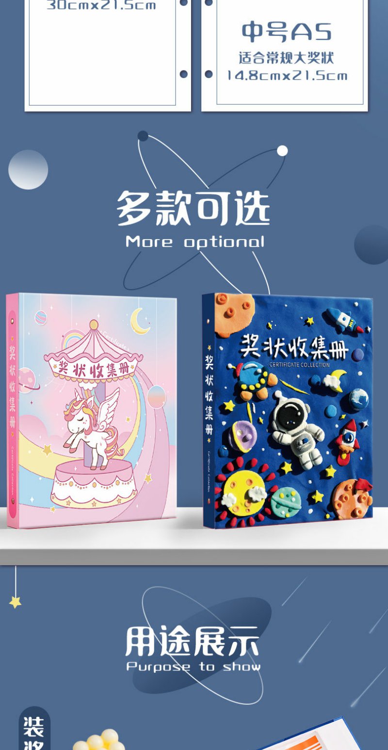 奖状收集册通用文件夹相册收纳册文件袋小学生专用透明插页资料册