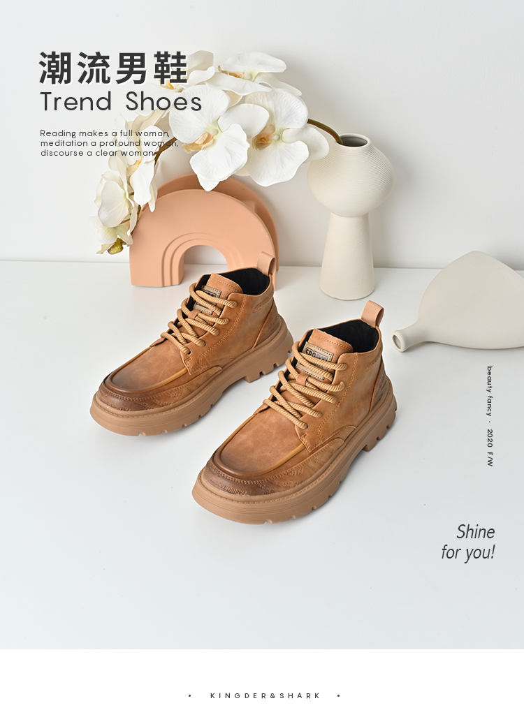 经典鲨2025年冬季专柜新款男士百搭圆头系带潮酷时尚单里马丁靴棉鞋KF20-555051