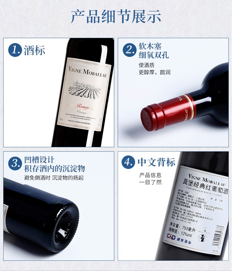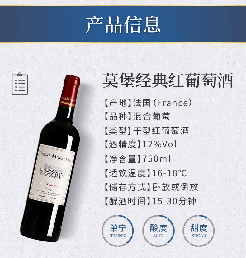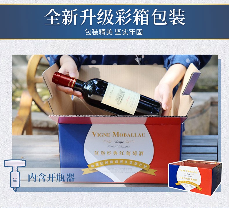 建发酒业 法国原瓶进口红酒 莫堡经典红葡萄酒礼盒 750ml*6瓶 12度干红葡萄酒 六支整箱