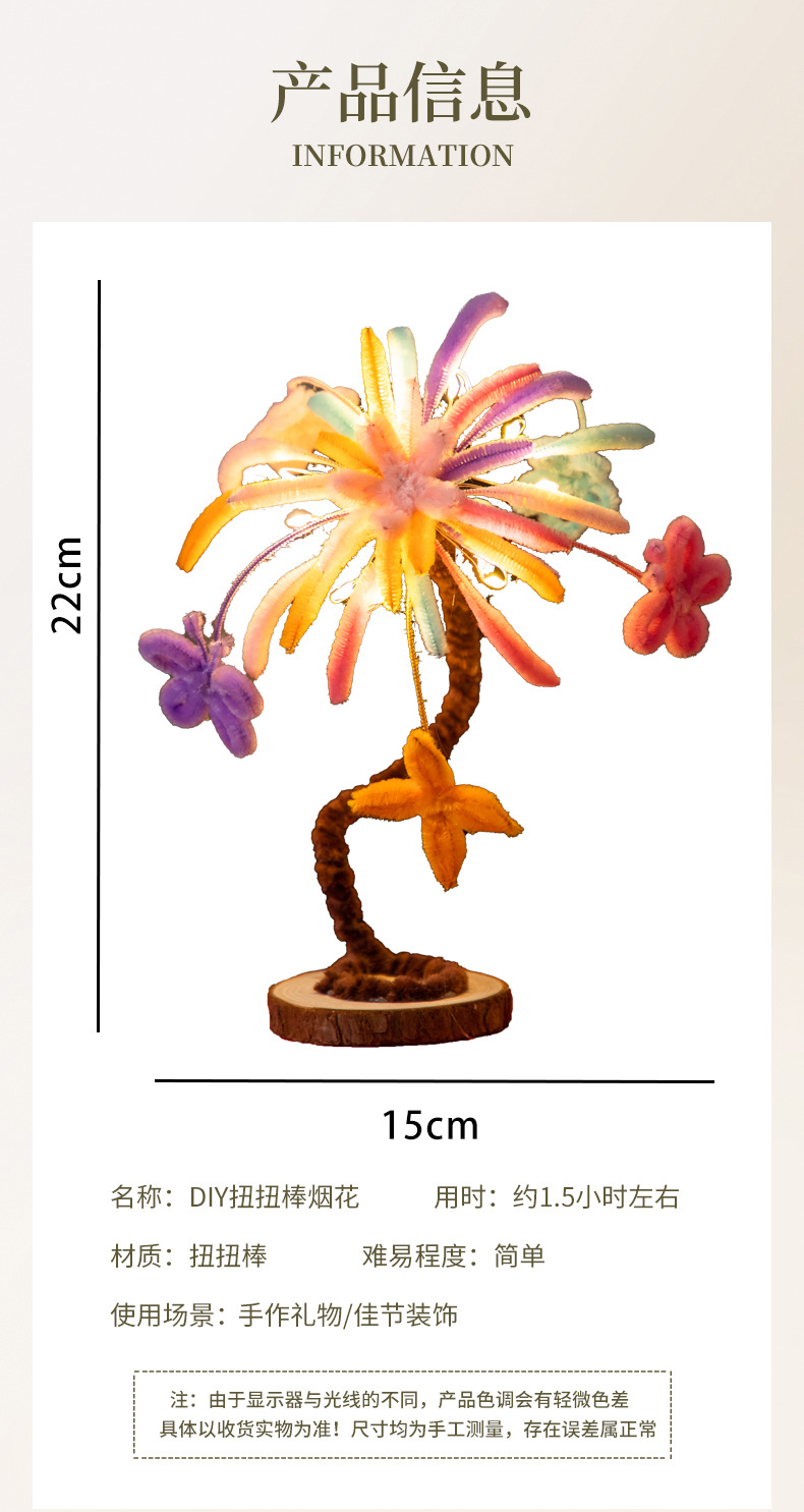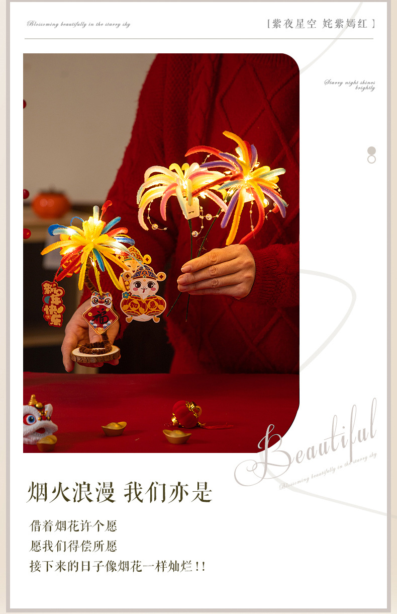 【新年装饰❗️发光烟花扭扭棒摆件+吊卡】烟火向星辰,所愿皆成真,马年春节手工diy花束材料包儿童幼儿园玩具礼物品