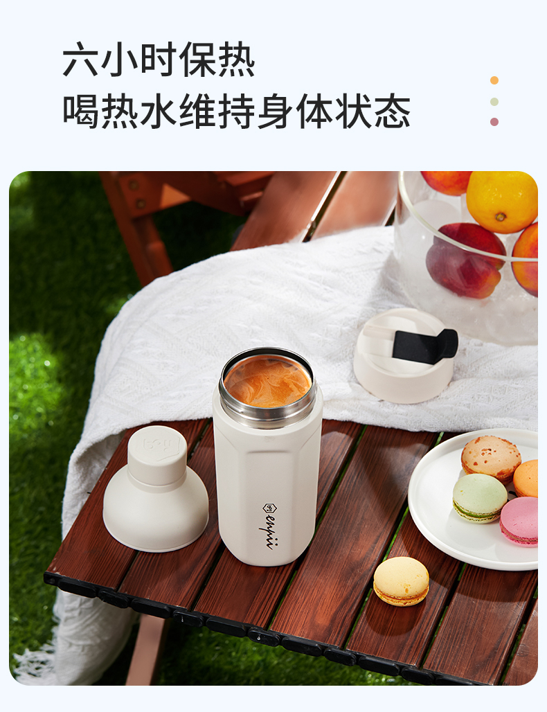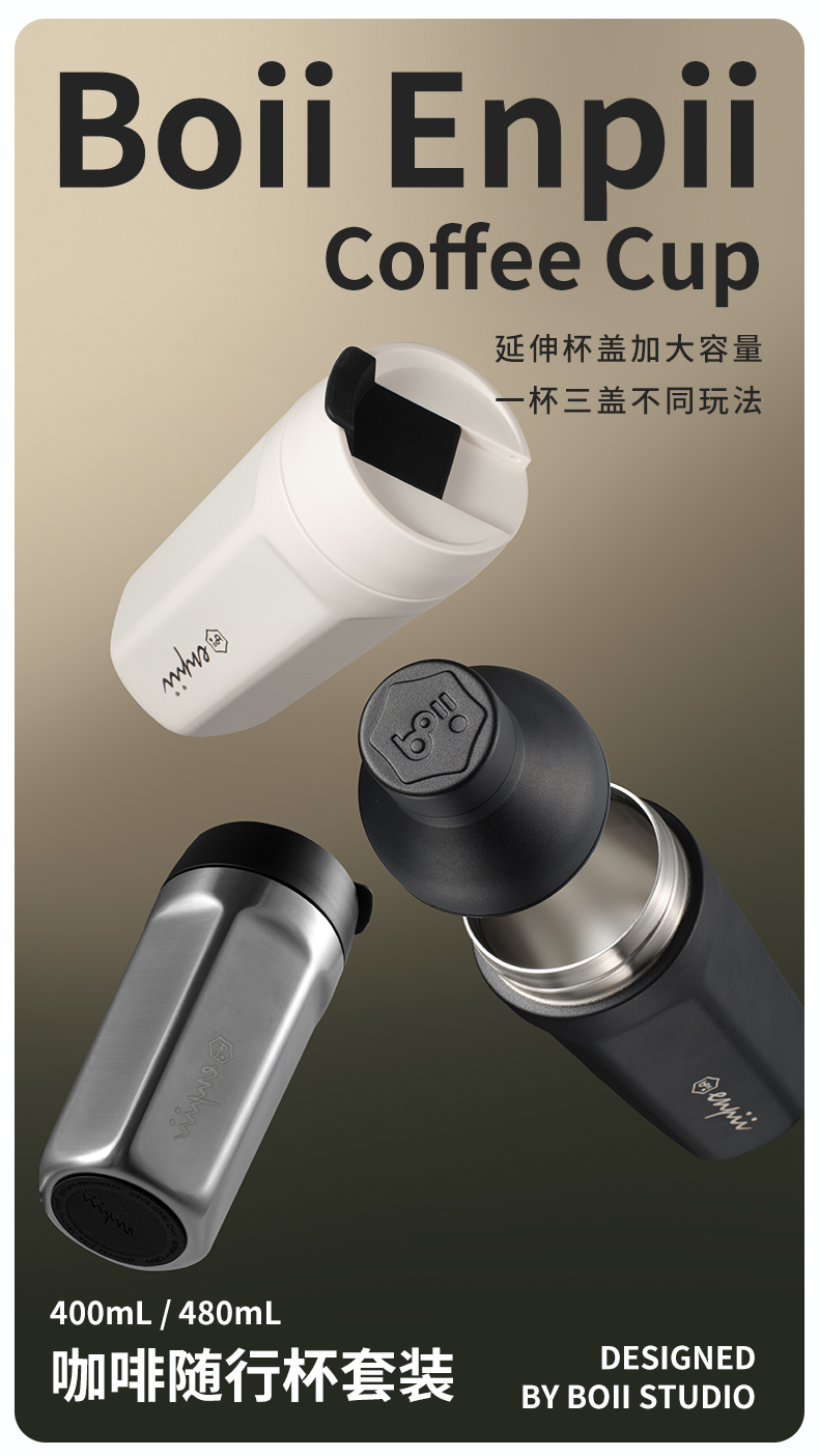 一杯三盖 高颜值保温杯 · 原创设计boii本因 六角 咖啡随行杯 多用保温杯 运动水杯 400ml~480ml|品牌直发