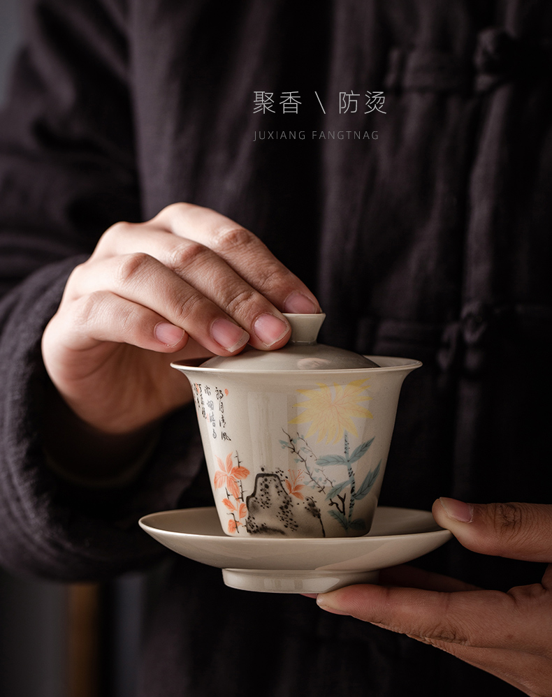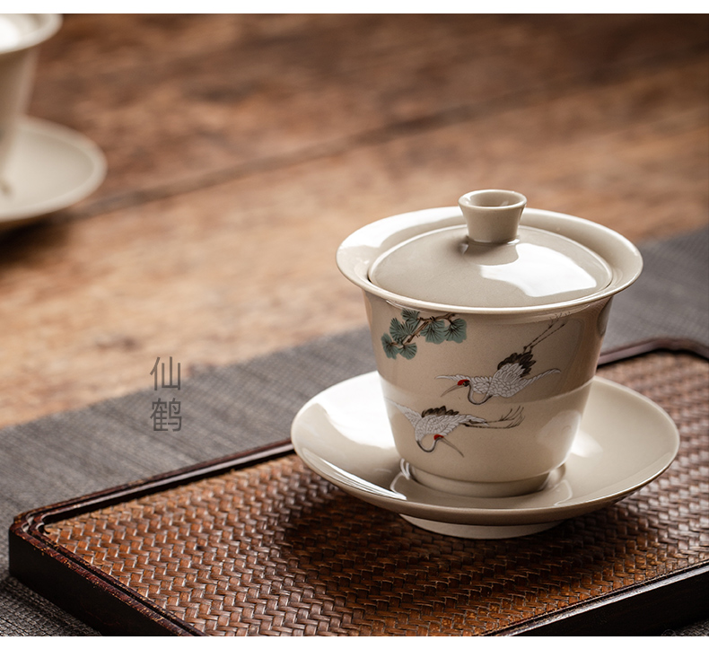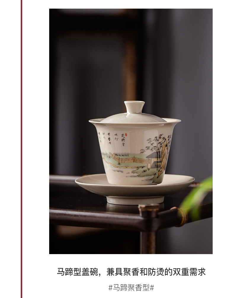 永利汇三才盖碗马蹄单个小泡茶杯茶碗功夫茶具景德镇陶瓷三炮台