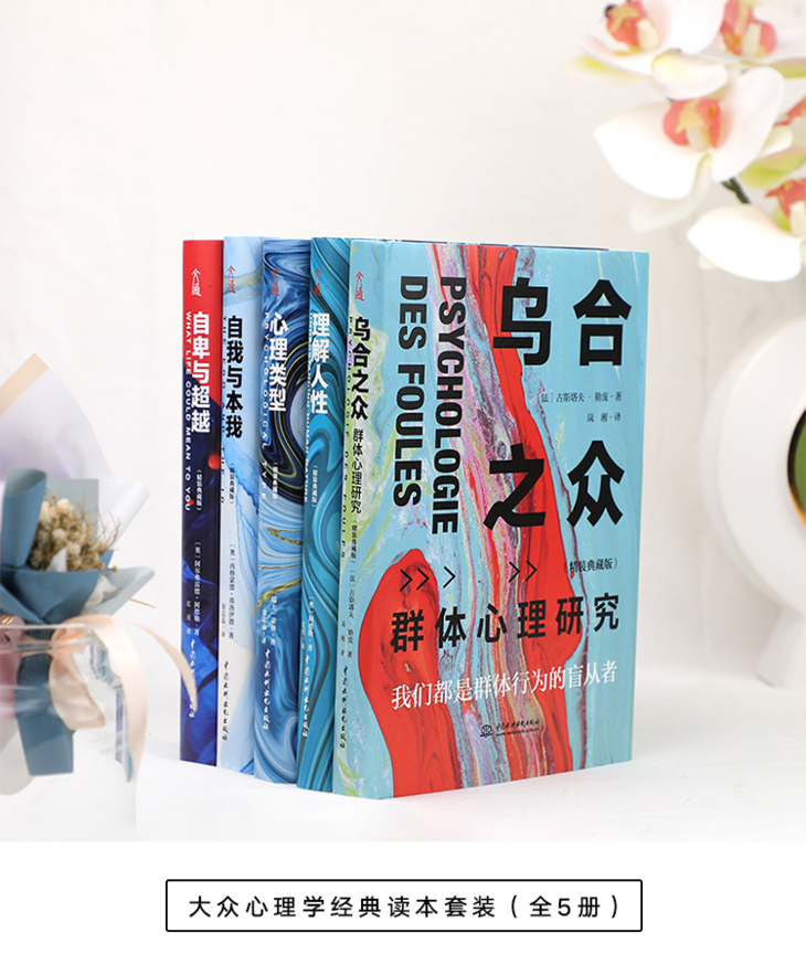 今天,我特别推荐这套大众心理学,包括《自我与本我》、《理解人性》、《心理类型》、《自卑与超越》、《乌合之众》这五本经典中的经典。