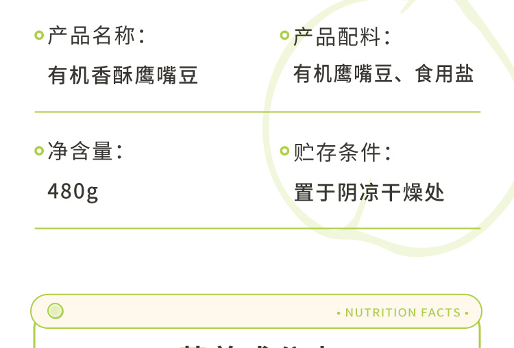 【即食】祁连农庄有机香酥鹰嘴豆/纯蒸鹰嘴豆 素食健康高蛋白零食480g/罐