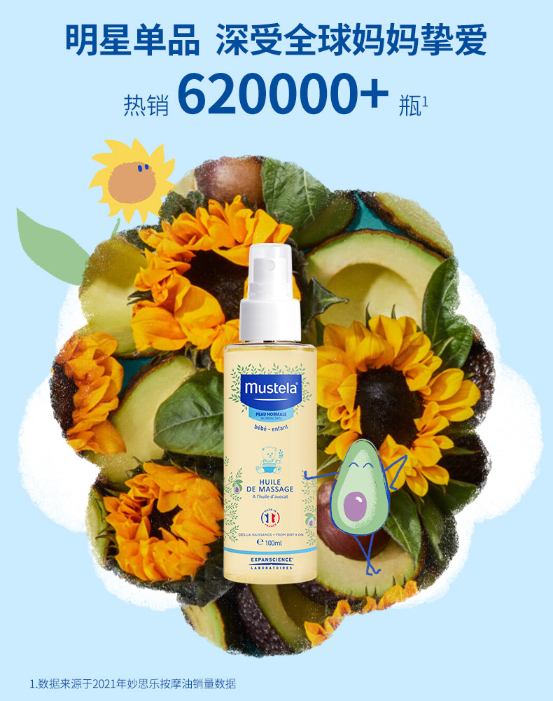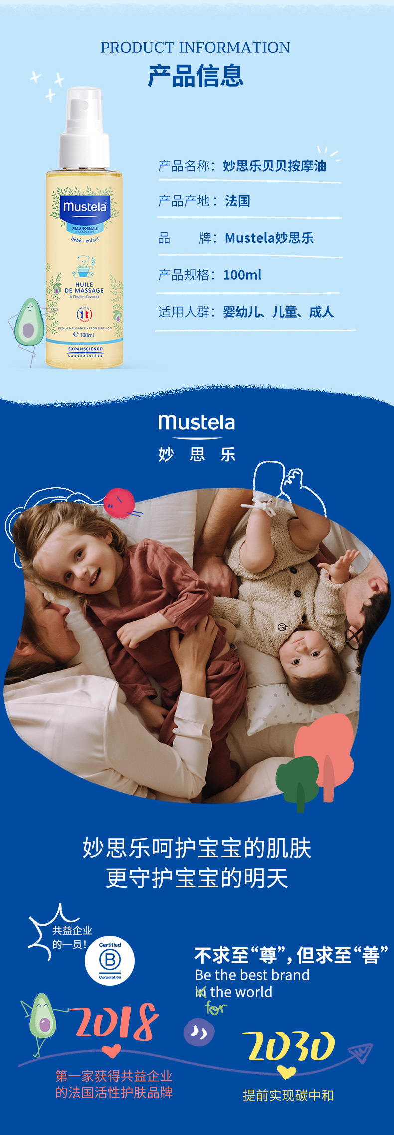 法国mustela妙思乐婴儿保湿滋养贝贝按摩油100ML