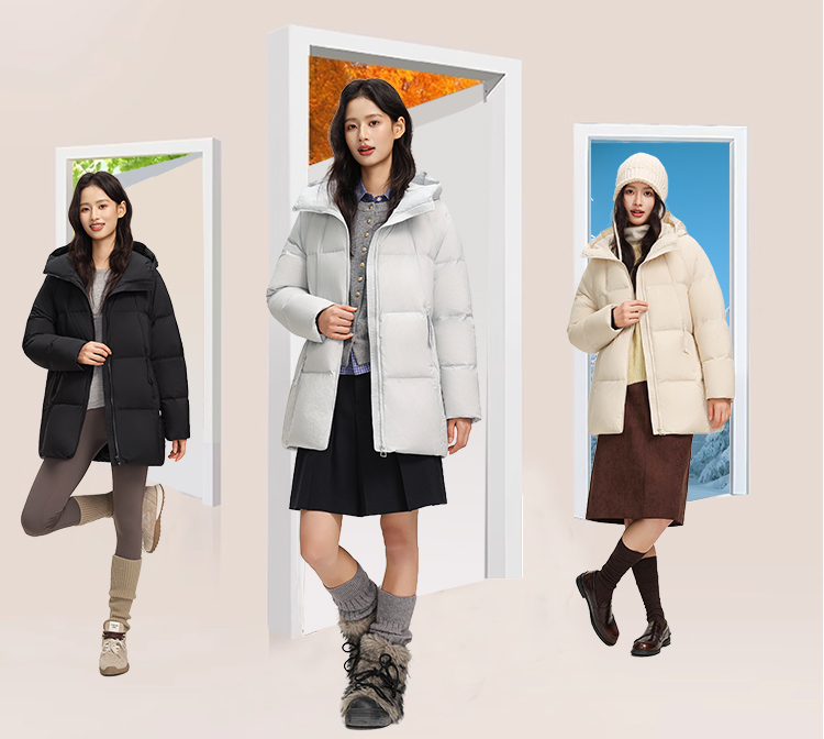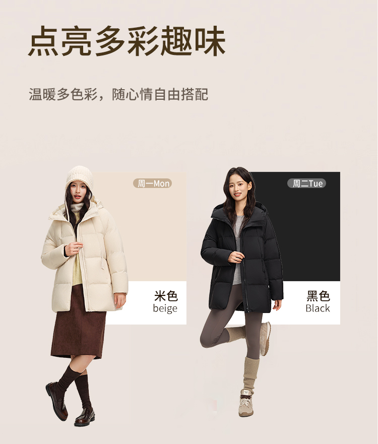 女士1036-1泡芙羽绒系列 中长款多彩羽绒服 轻盈保暖 90羽绒(常熟羽绒服工厂购)