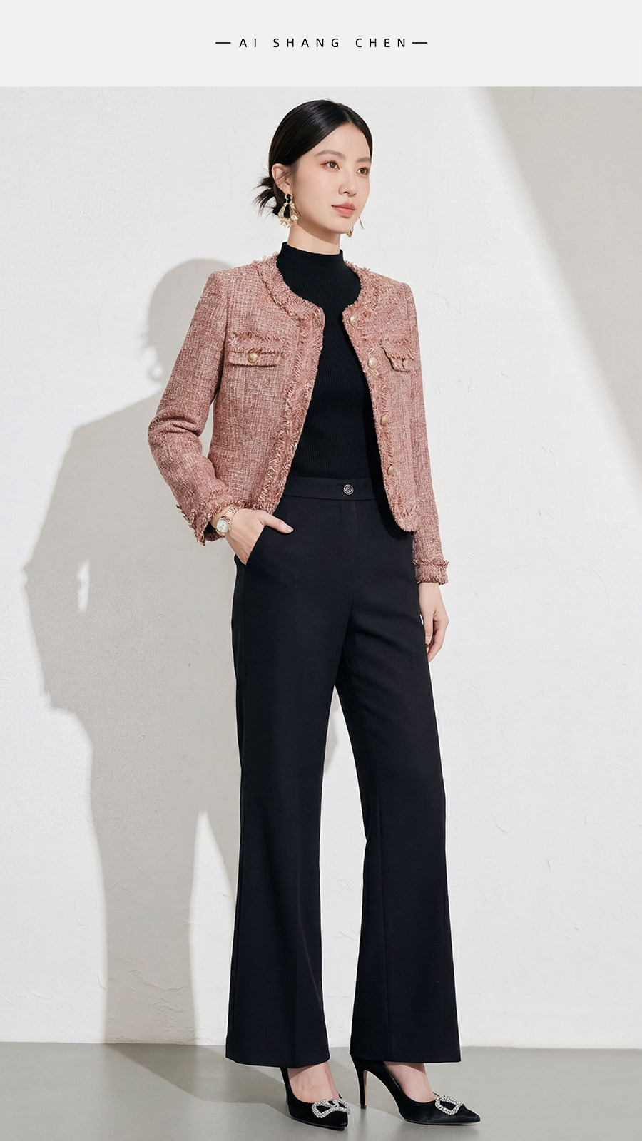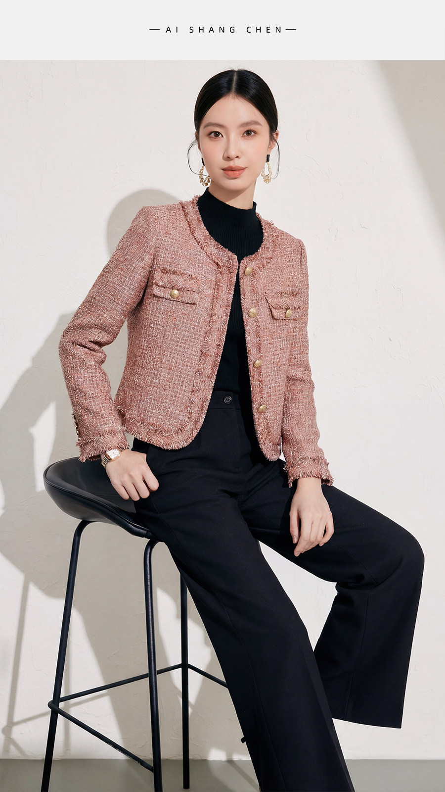 艾尚臣小香风名媛套装女春秋职业装外套半裙两件套千金风通勤装