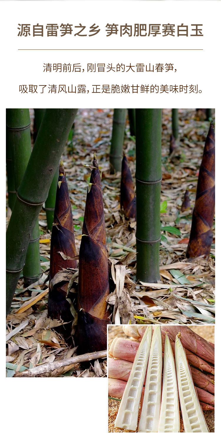 1、采用春季鲜笋,天然柴火烤制8小时,现做现发