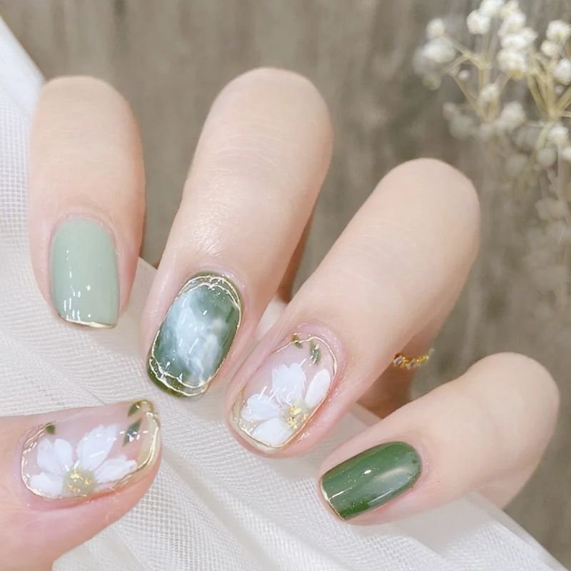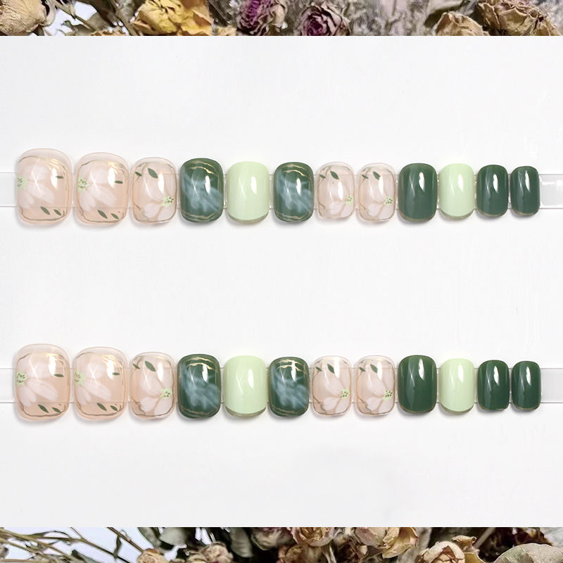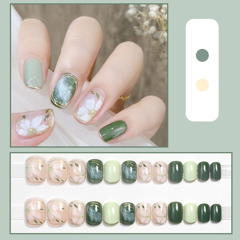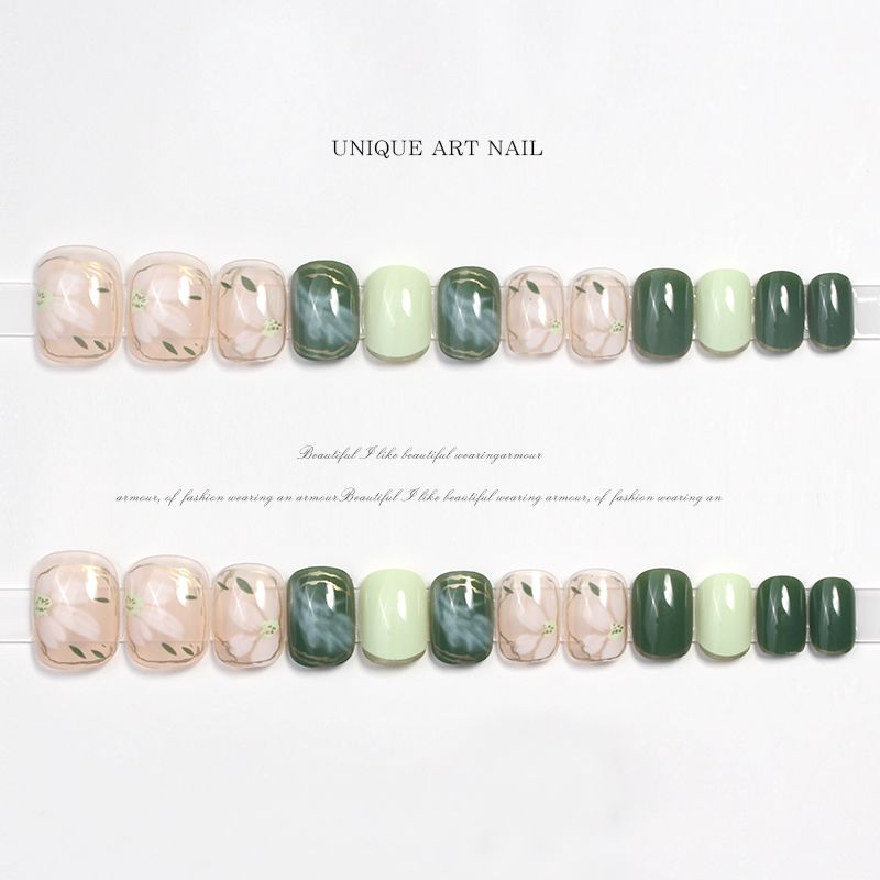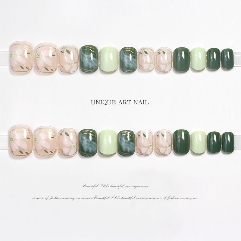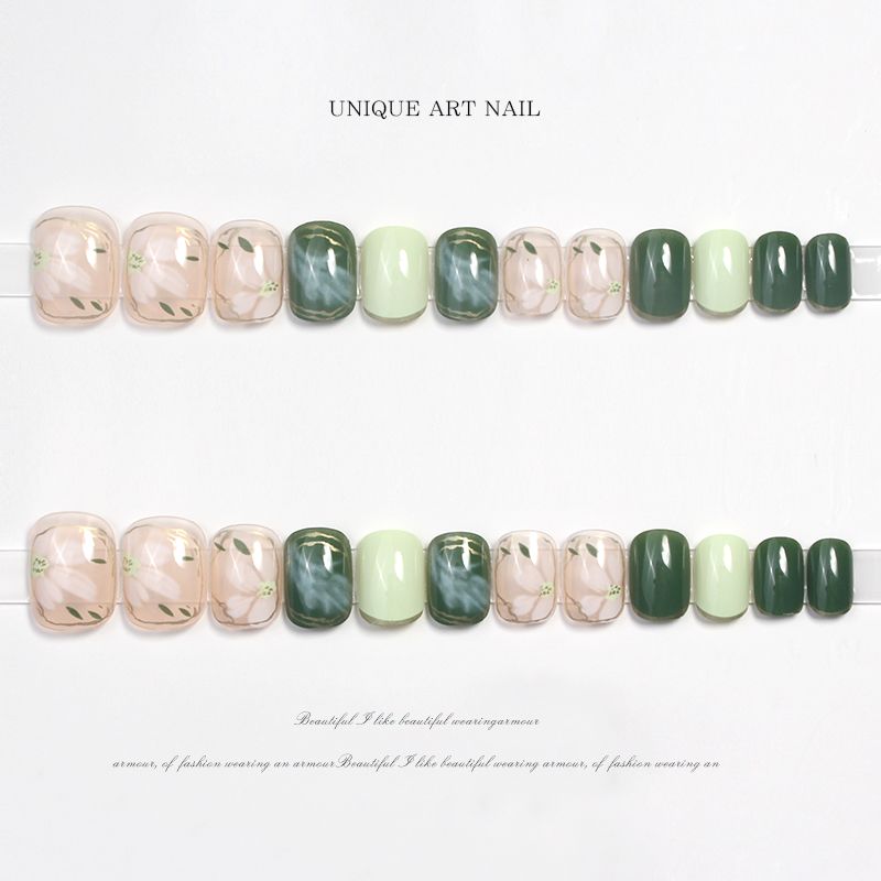 美甲显白穿戴甲假指甲贴片可拆卸夏日山茶花冬穿戴甲显白短款