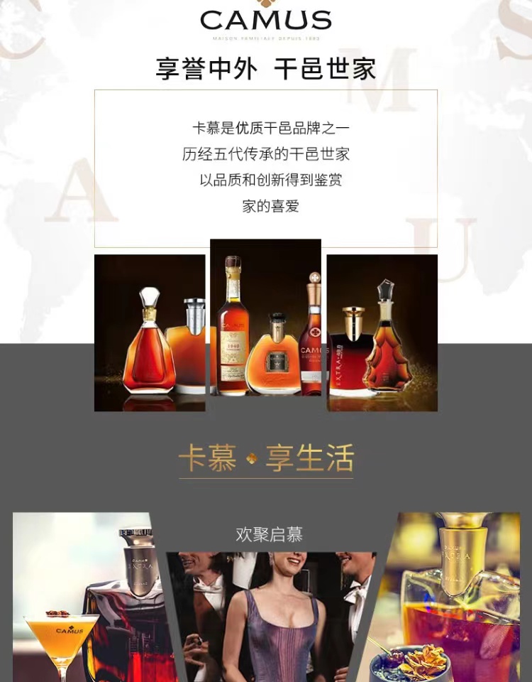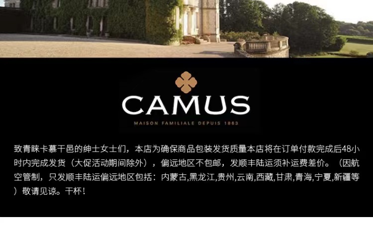 卡慕(CAMUS) 经典特醇 干邑白兰地 40度 700ml 洋酒礼盒 法国进口洋酒