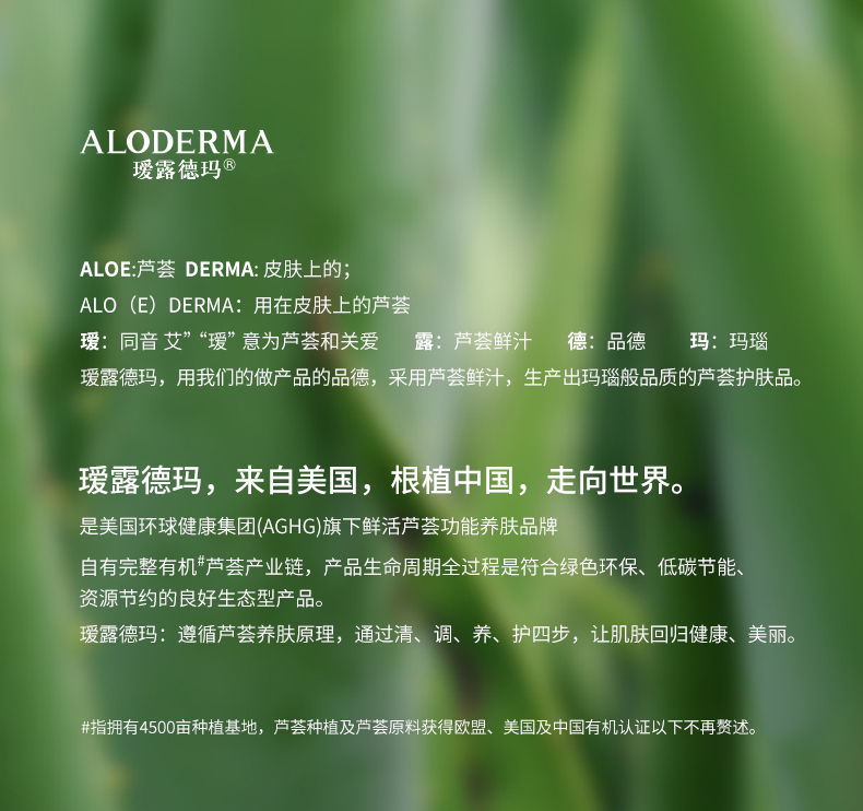 - 瑷露德玛是美国环球健康集团全资子公司台山美环健芦荟制品有限公司旗下的芦荟护肤品牌,我们产品均采用SATT独家专利技术生产,纯新鲜,不添加水,不添加芦荟冻干粉,不添加防腐剂。鲜纯芦荟,自然更美。
