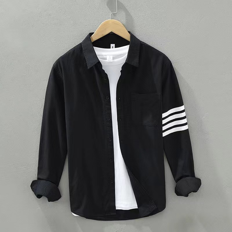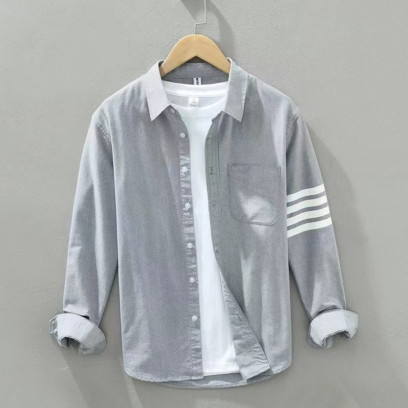 春款上新春秋水洗工艺四条杠全棉长袖衬衫。衬衫中一款精典纯粹4色的衬衫,颜色非常好看 ,可以贴身穿 ,也可以当外套穿 ,一年四季都可搭配 ,面料采用水洗点式纯棉面料 不掉色 不变形 上身非常舒适 采用胶印技术 不会开裂 非常值得入手的一件衬衫 百搭又不失精典 强烈推荐情侣都可轻松搭配