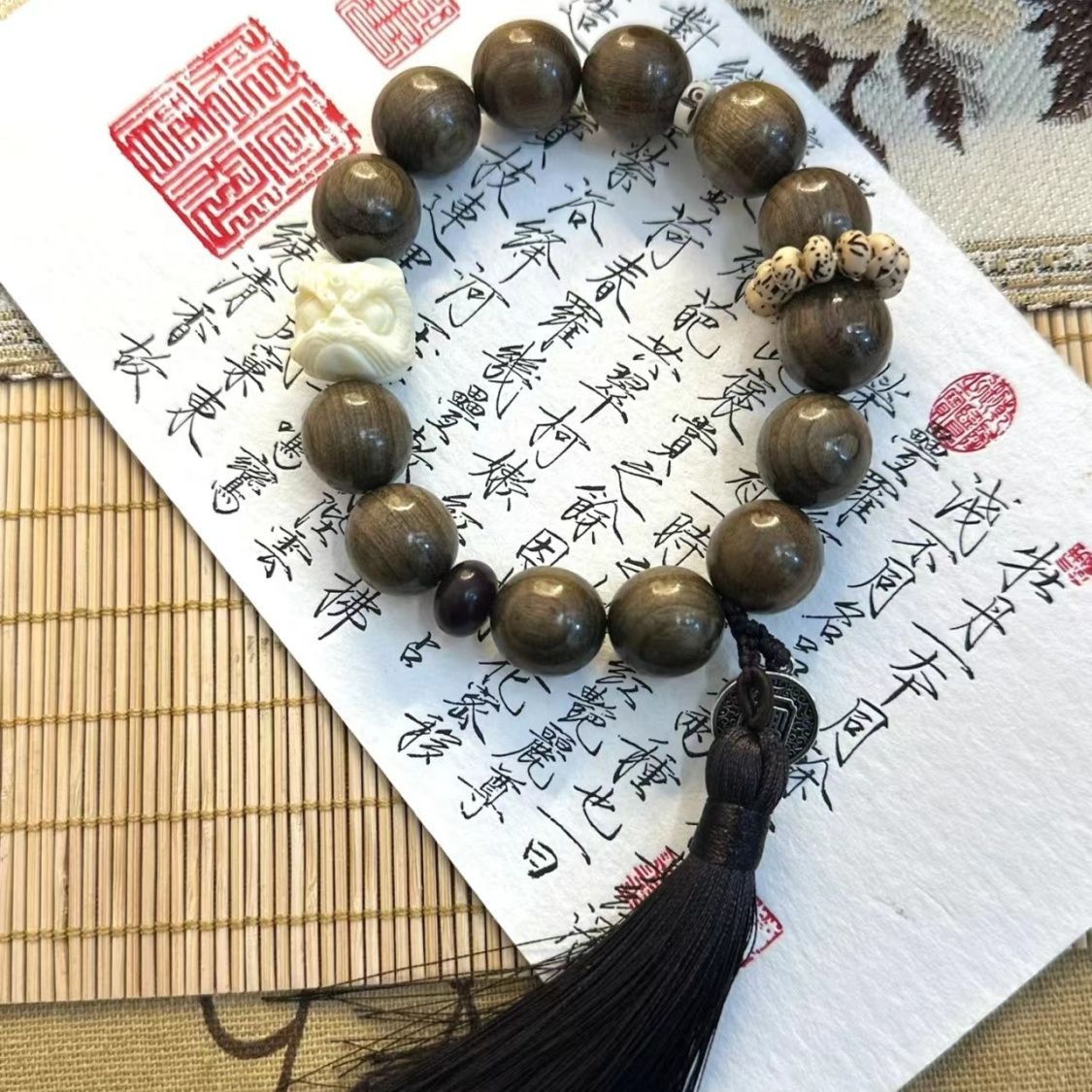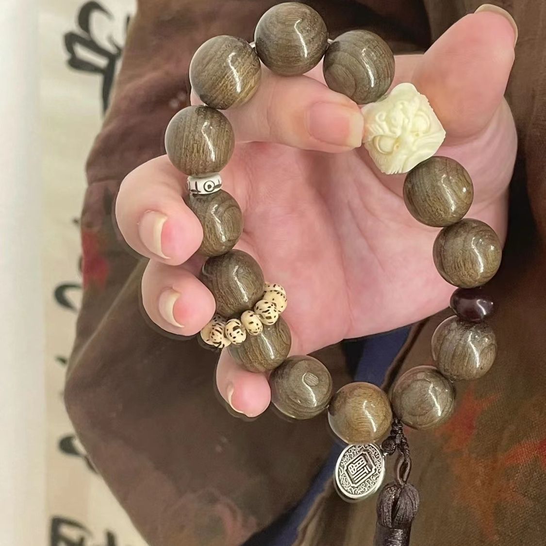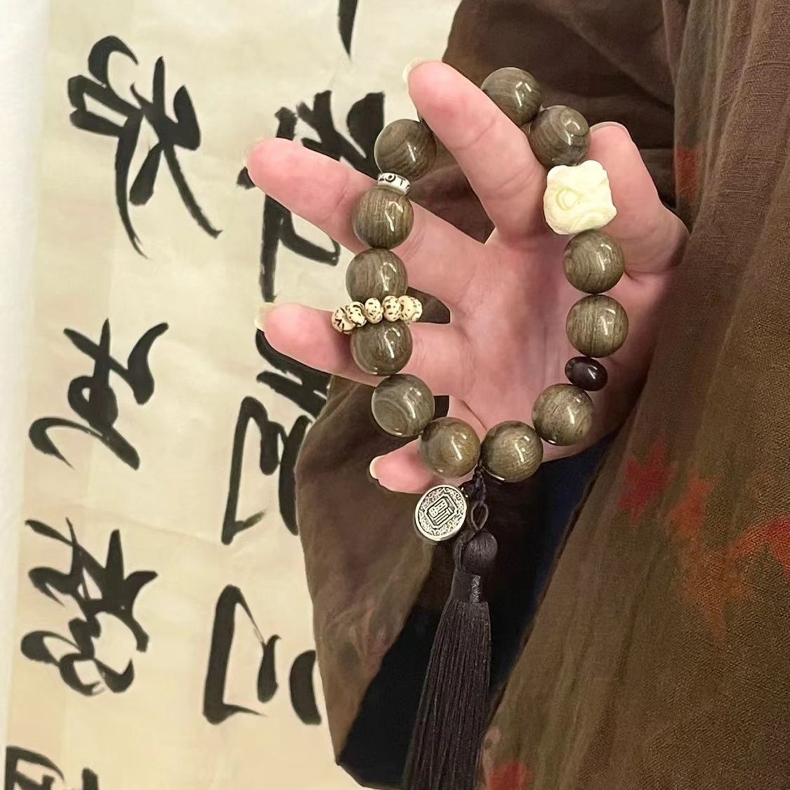 【粉丝专属❗️金丝檀木醒狮手串】新中式金丝檀木手串,国风阴沉木串手链,小众冷门古风雕刻念珠,情人节生日礼物情侣男女L
