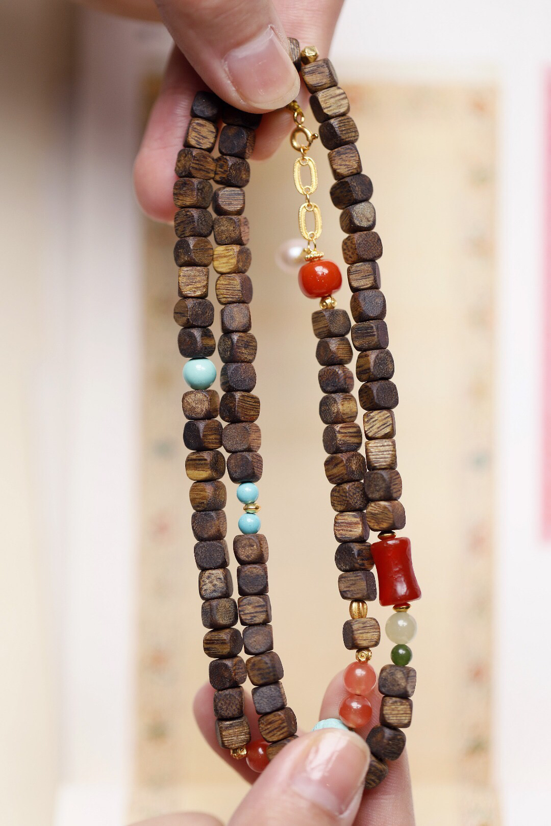 绿棋楠四方珠 通体结黑油,浑然天成,结油饱满,清幽甘醇! 细密的油脂看似浮于珠体表面,轻盈跃动, 其实是从内部丰盈溢出,味道可圈可点, 香气扑鼻,冰凉味怡人,佩戴别致、儒雅。