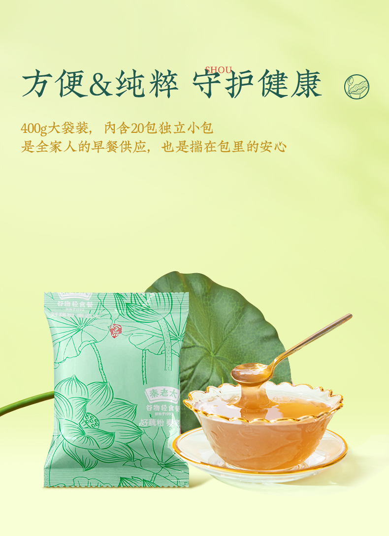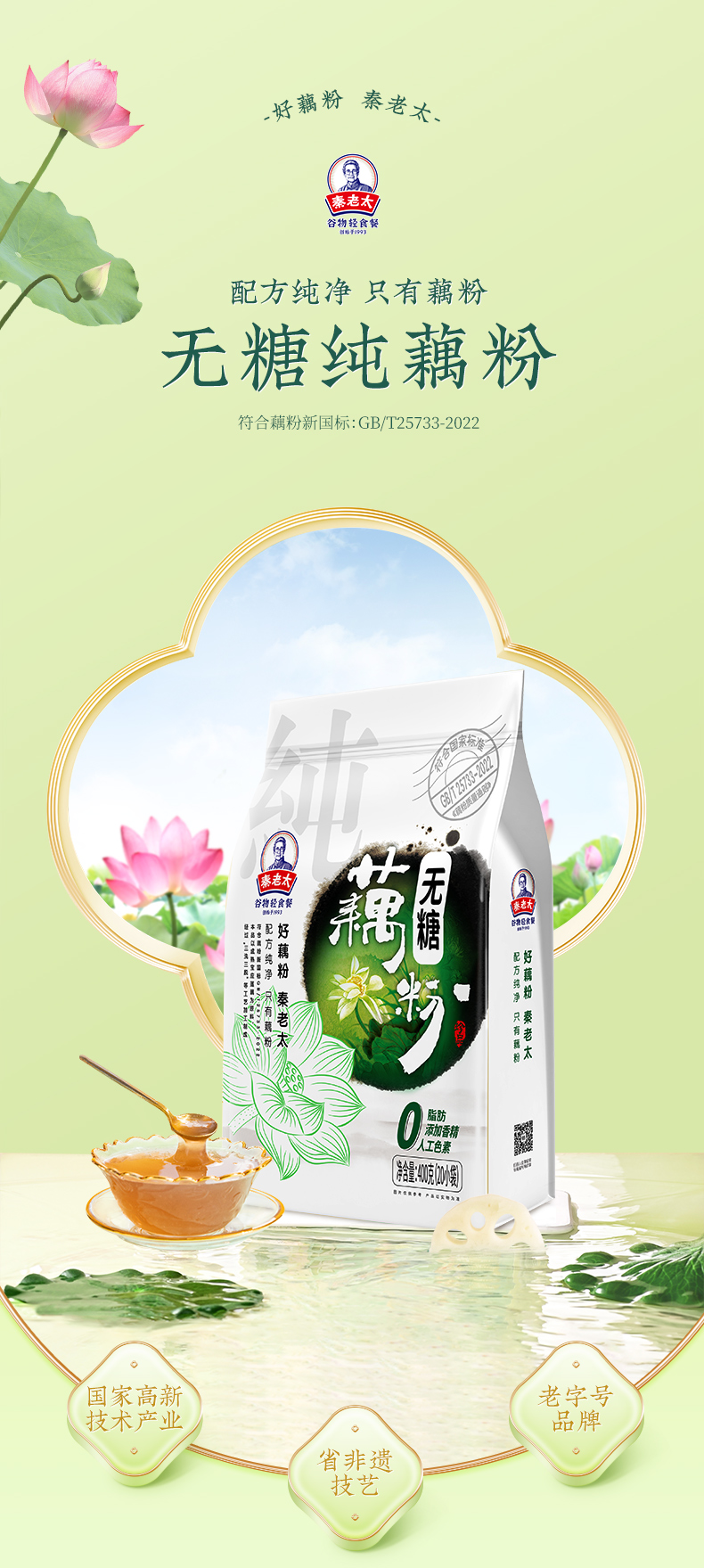 [329条好评]秦老太无糖纯藕粉400g/袋(20小袋)0脂古法工艺