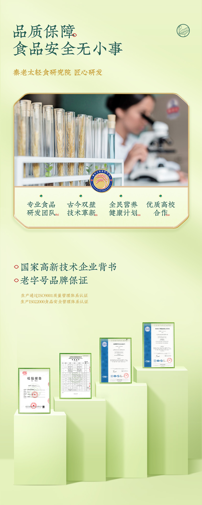 - 秦老太创始于1993年,专注谷物轻食餐。秦老太茶汤,2012年被正式授予非物质文化遗产。进入新时代,秦老太人怀揣匠心精神,以 “为家人制造食品”为理念,传承中华食养文化!