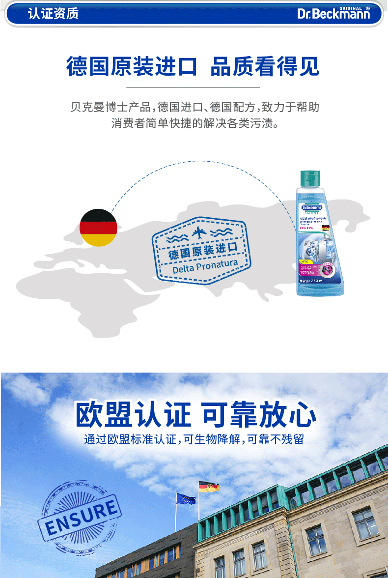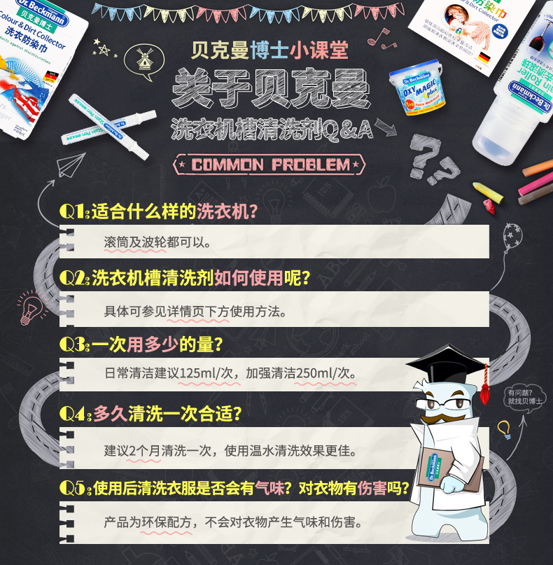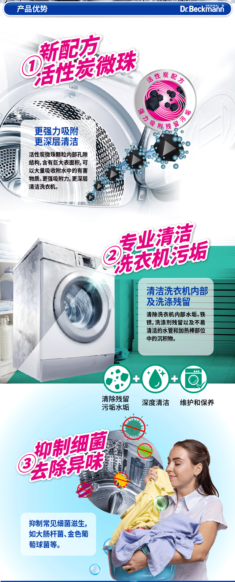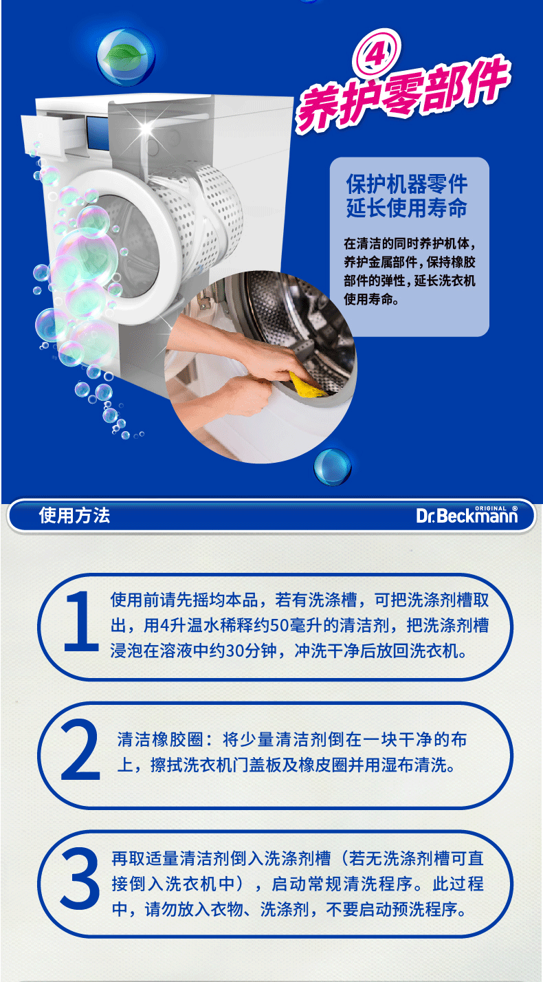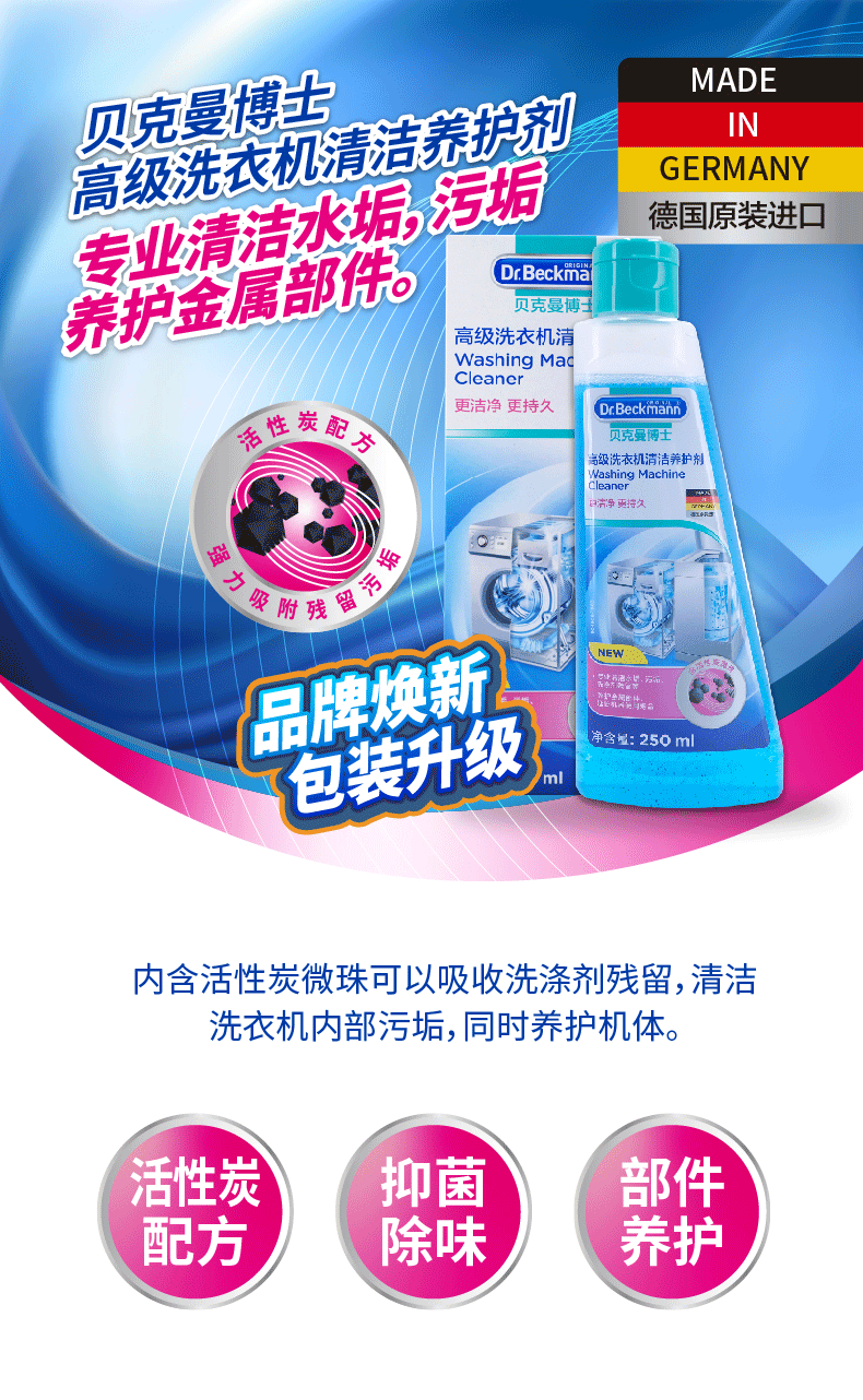 【大扫除神器】德国进口贝克曼高级洗衣机清洁养护剂 清理洗衣机槽清洗剂 杀茵消毒家用滚筒式全自动清洁养护剂【29年8月】