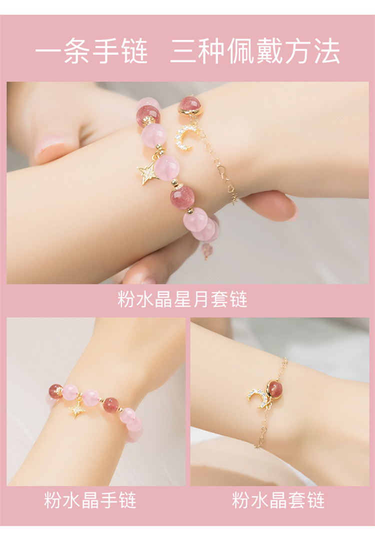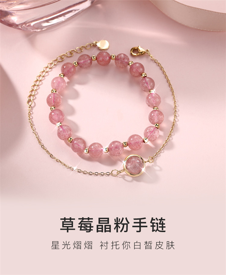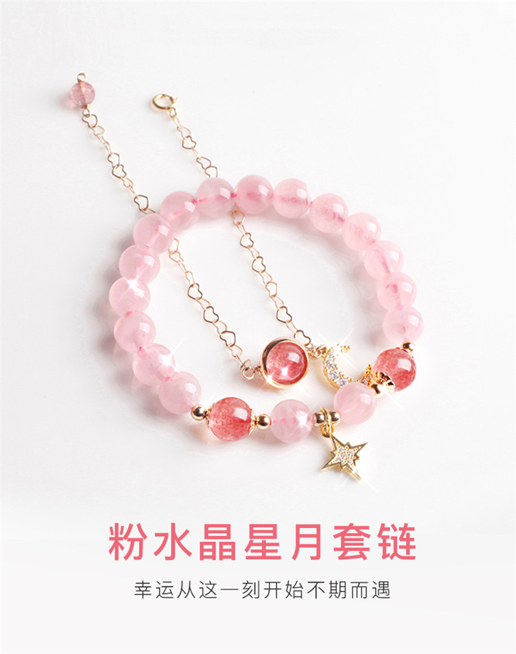 T400新款 草莓晶手链套装 桃花朵朵 开春转运 甜度满分