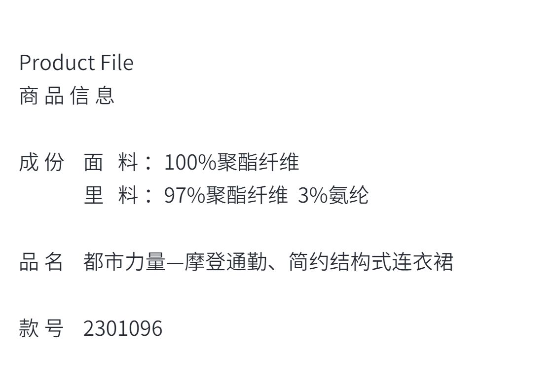 “都市力量”—摩登通勤、—简约结构式优雅连衣裙 2301096