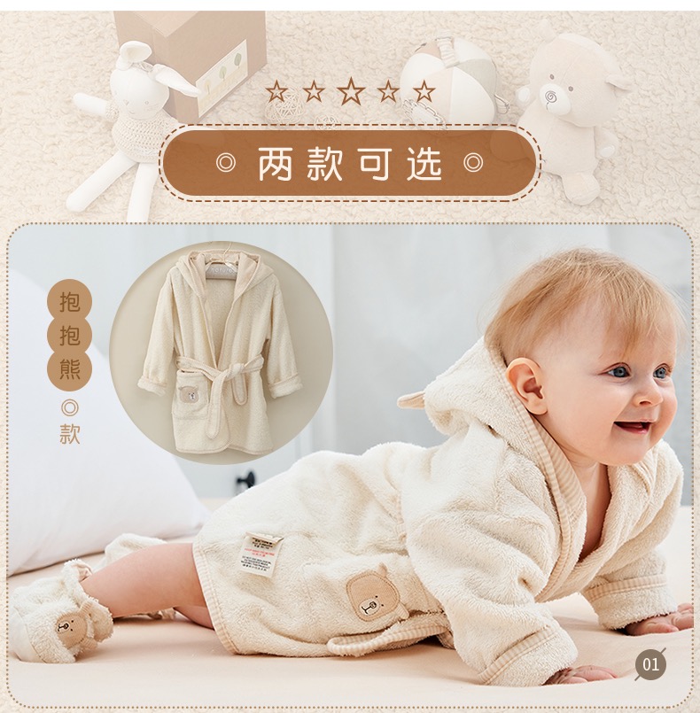 【云粉节】9楼英国natures purest(天然素彩)宝宝浴袍婴幼儿童浴袍带帽婴幼儿男女童秋冬棉袍丨吊牌价:648元,活动价:608元