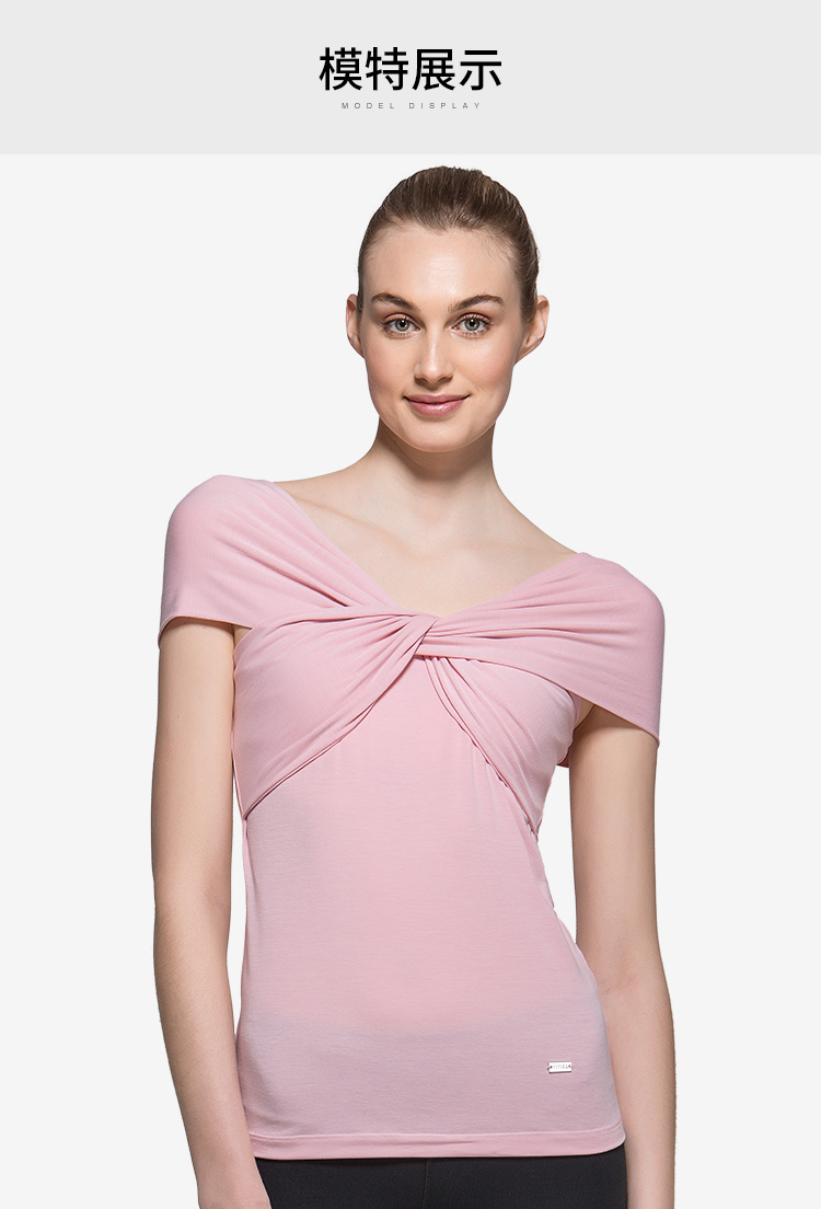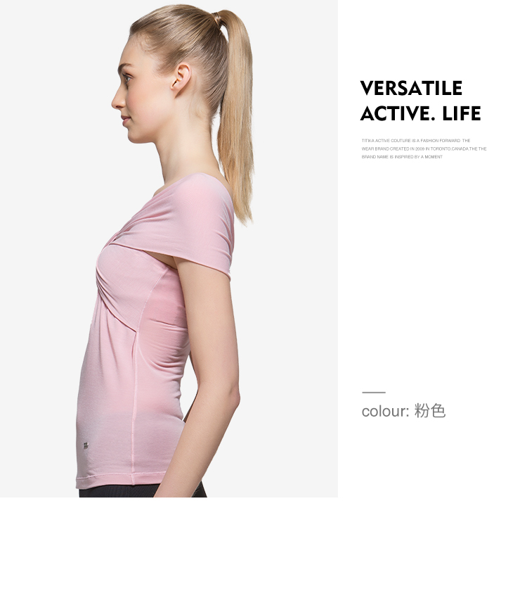 TITIKA夏季新款瑜伽服蝴蝶结交叉短袖运动上衣紧身瑜伽t恤女63948