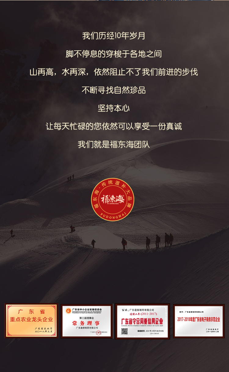 福东海,是2013年成立的一个药业品牌,秉承“南派养生,健康生活”的理念,专注于药食同源食品、养生茶、滋补膏方、滋补养生丸的研发、生产及销售。品牌一直遵循天然、生态、放心的健康准则,基于南派食疗文化,主张让健康养生便捷化。店里的西洋参、红枸杞、VC含片、龙眼干都是他们家的,性价比都很不错。
