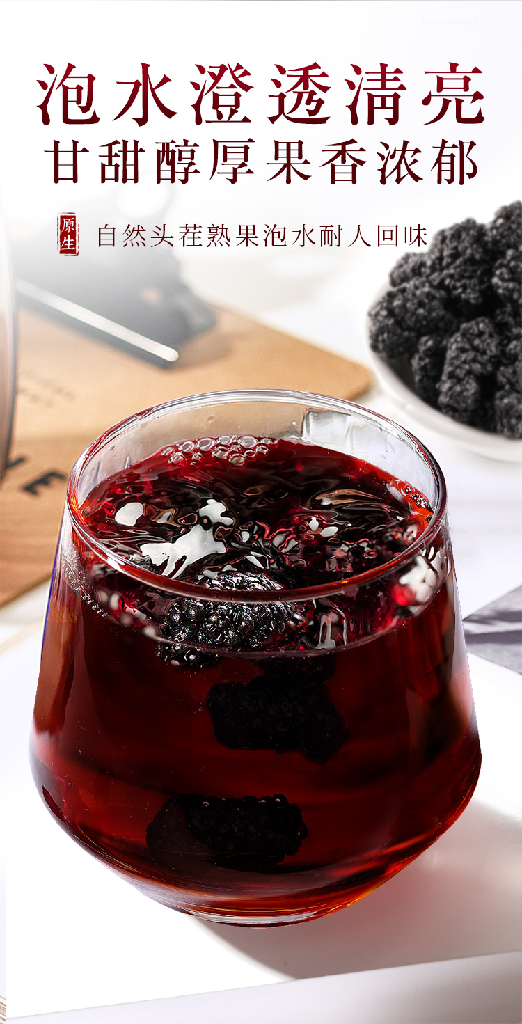 桑葚子可以直接吃,不爱喝白水的也可以直接泡水喝,味道相当不错,养生小达人还可以加上玫瑰、红枣、桂圆、枸杞类一起。容易长痘痘或者最近有炎症的老粉,还可以搭配苹果醋一起喝,桑葚具有妔炎和妔氧化的特性,有助于缓解炎症反应,而苹果醋又可以帮助平衡皮肤的PH值,减少油脂分泌,同时发酵的苹果醋也能中和桑葚的寒性,更温和!可以先用热水泡好桑葚后, 再加入适量的苹果醋,喜欢甜一些的话,再来一勺白蜂蜜,酸酸甜甜会更可口些。