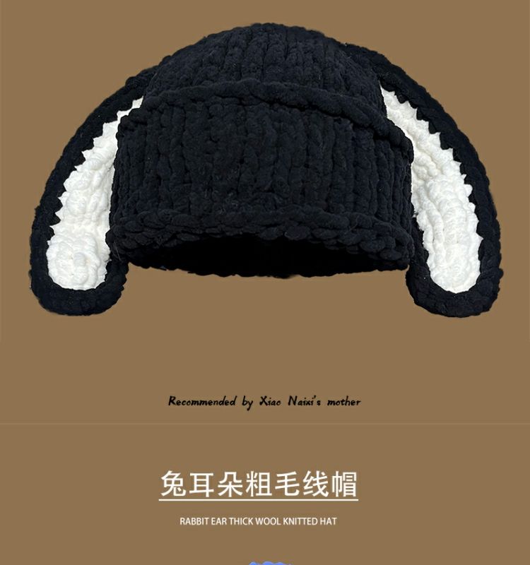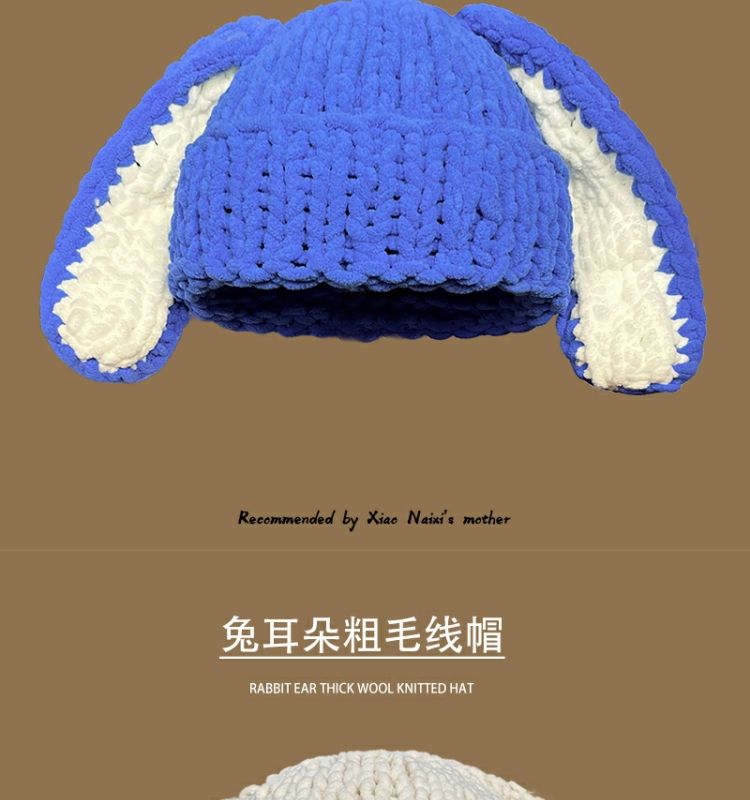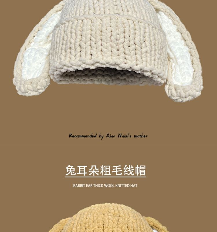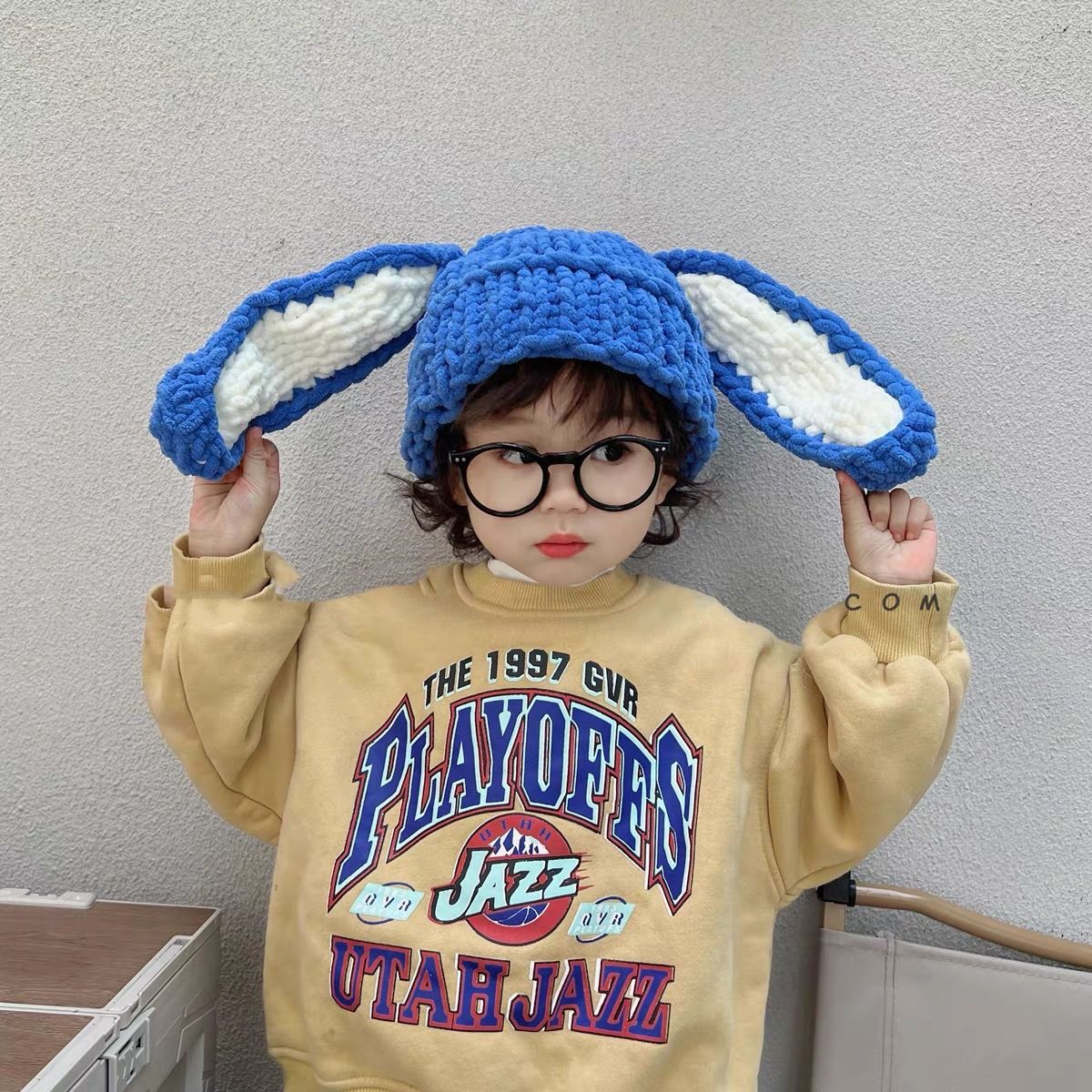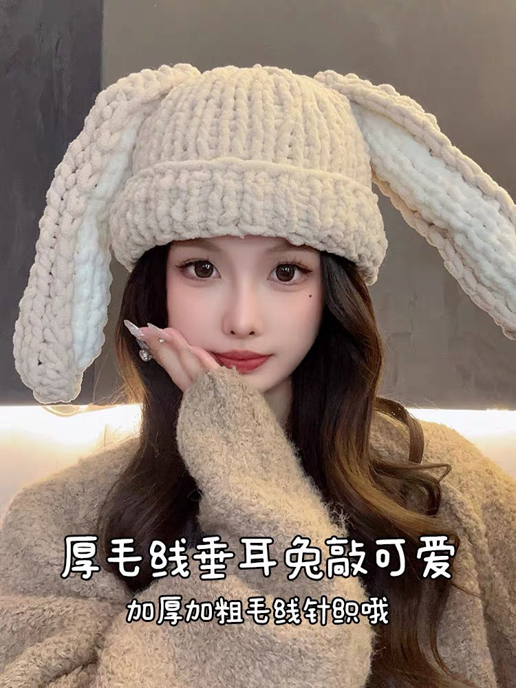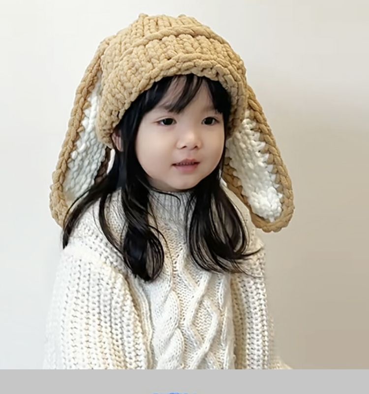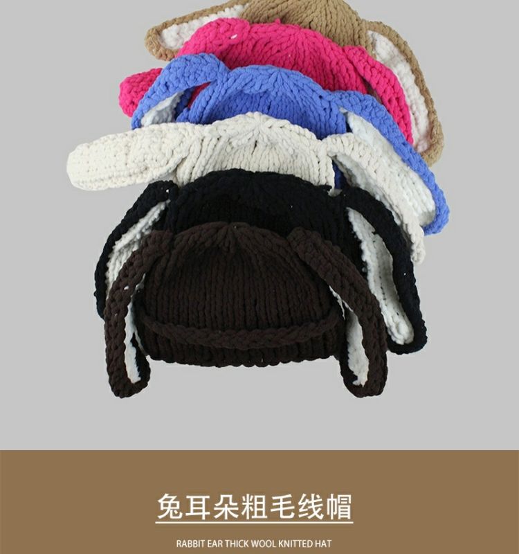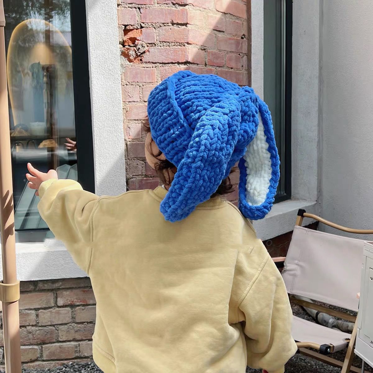 亲子款时尚毛线帽韩系超长兔耳儿童护耳帽女冬保暖潮品出游套头帽