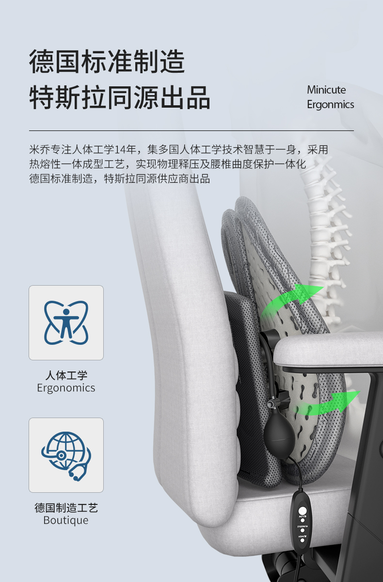 【电动加热款】米乔人体工学腰垫护腰靠垫办公室腰靠工位久坐神器座椅靠背垫腰托