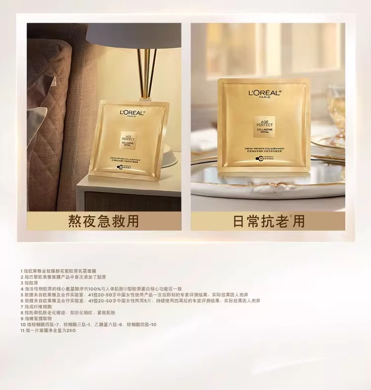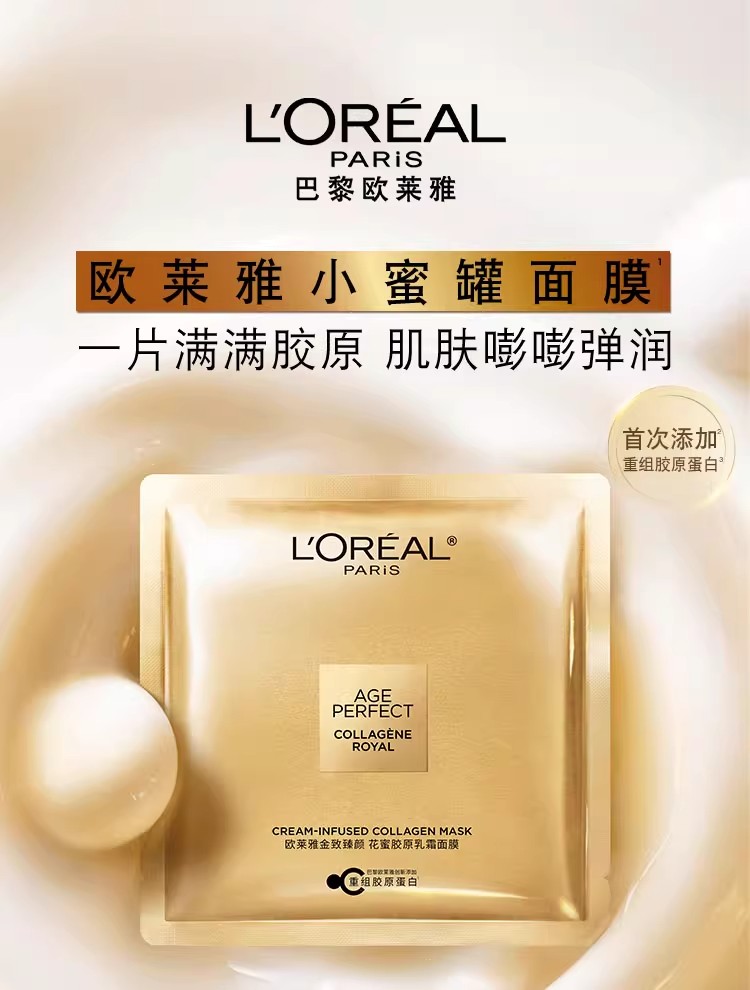 【马年开门红限时活动】(一般贸易)欧莱雅小蜜罐紧致抗皱花蜜胶原乳霜保湿面膜1盒/5片