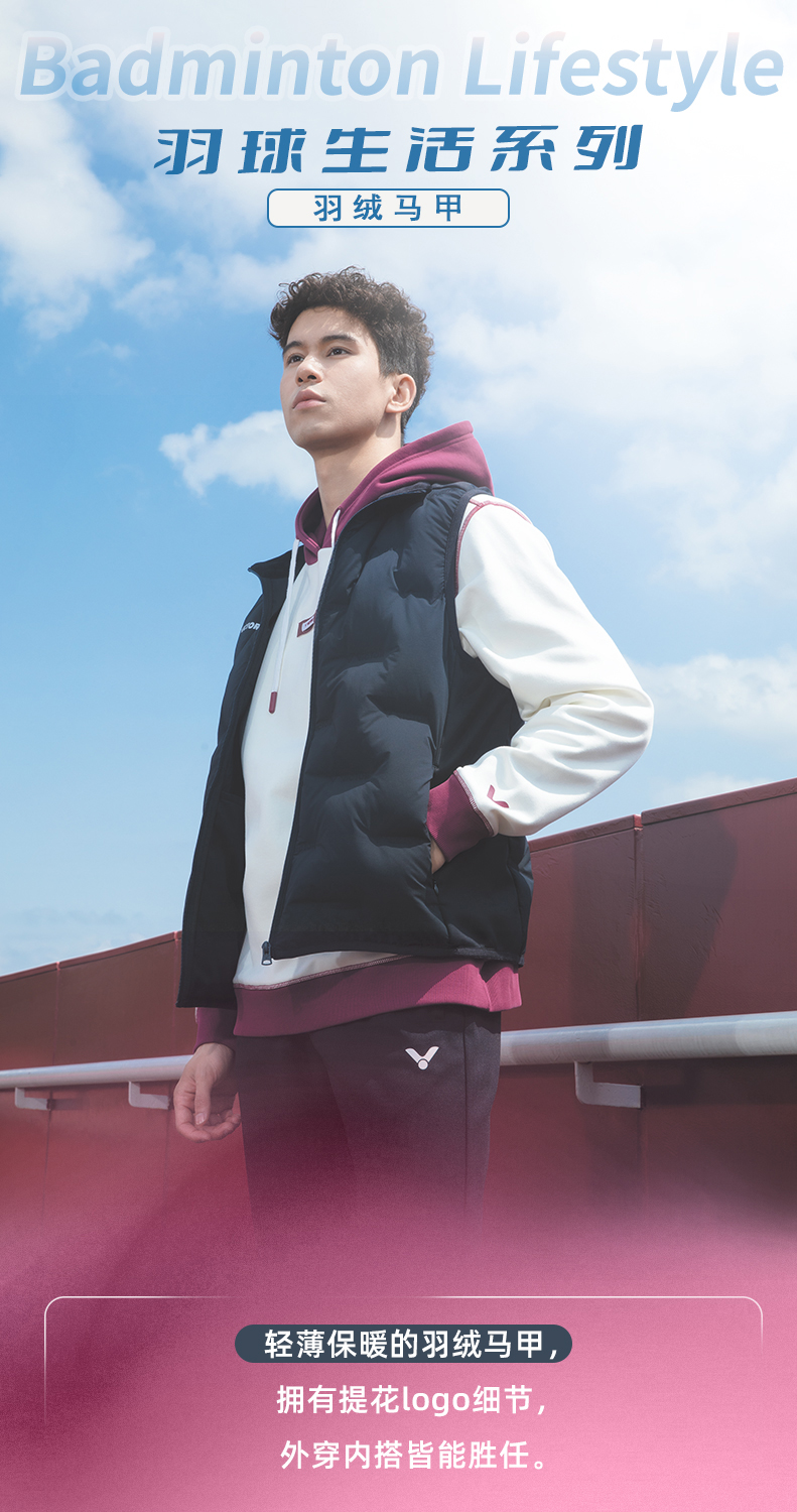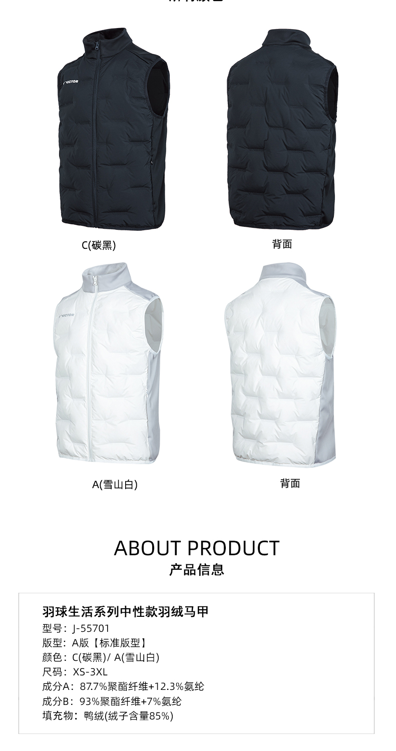 VICTOR威克多胜利羽毛球服羽绒马甲加厚保暖时尚运动背心J-55701