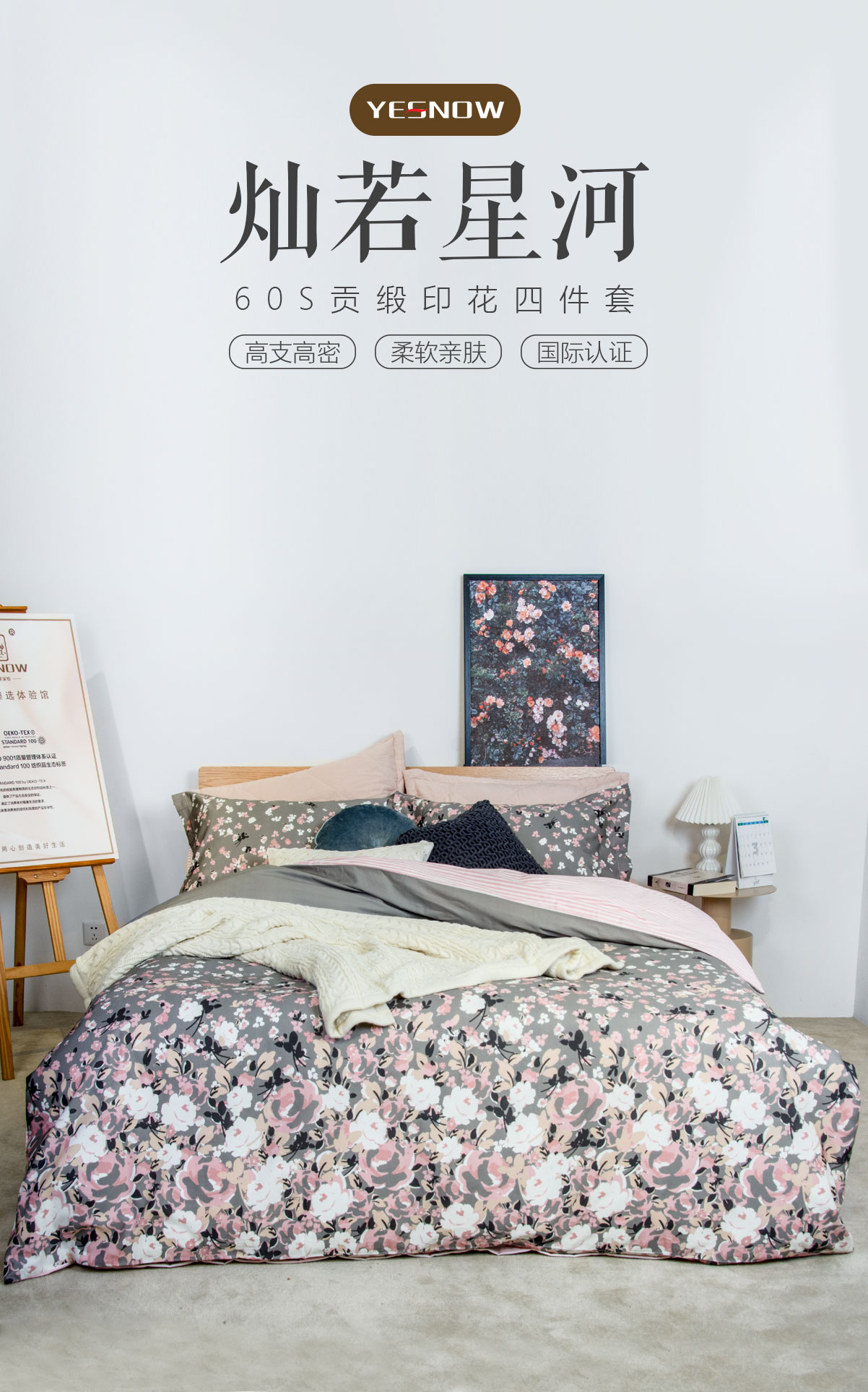 云丝锦暖绒数码四件套-逅花园-灰/抗菌