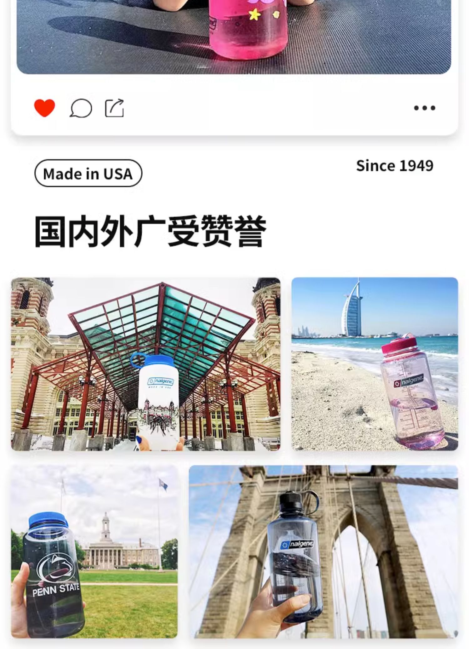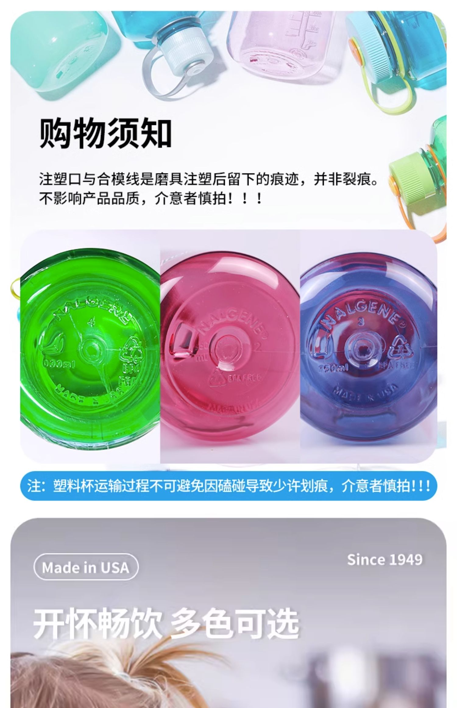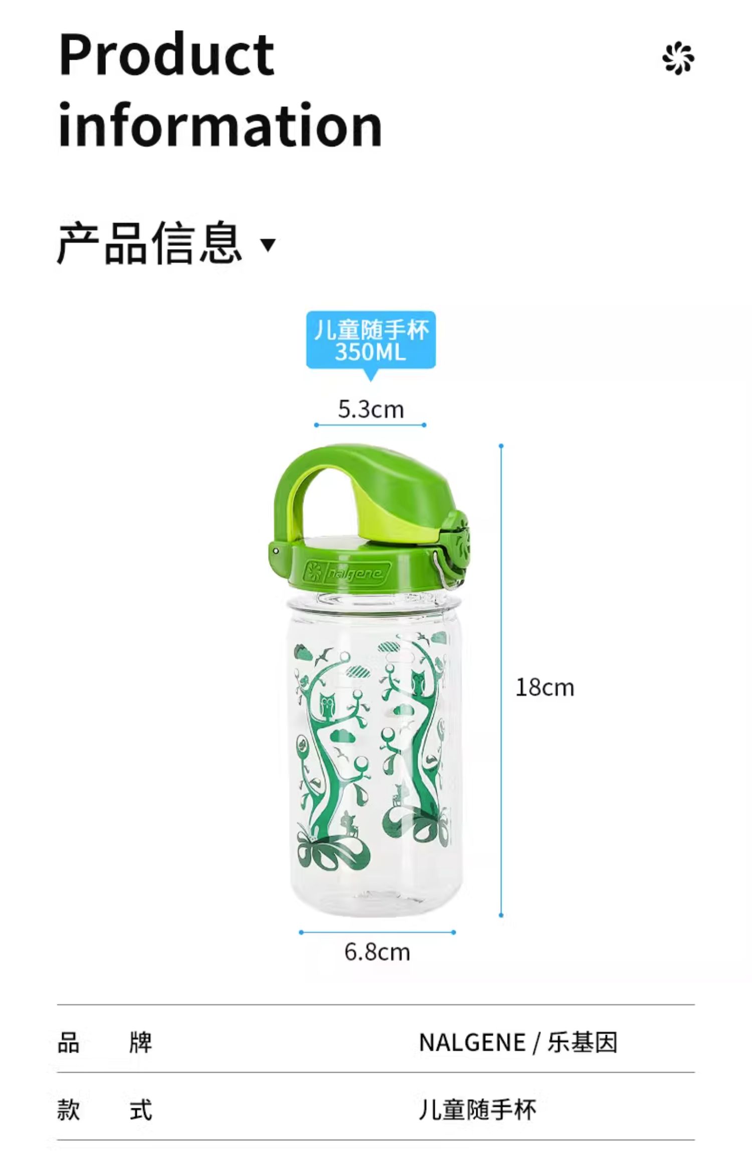 美国nalgene儿童宝宝专用水杯夏季小学生便携防摔可爱卡通水壶