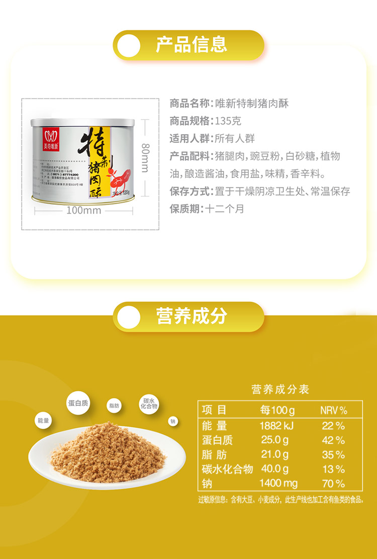 【休闲食品 肉酥】美奇唯新 135g特制肉酥