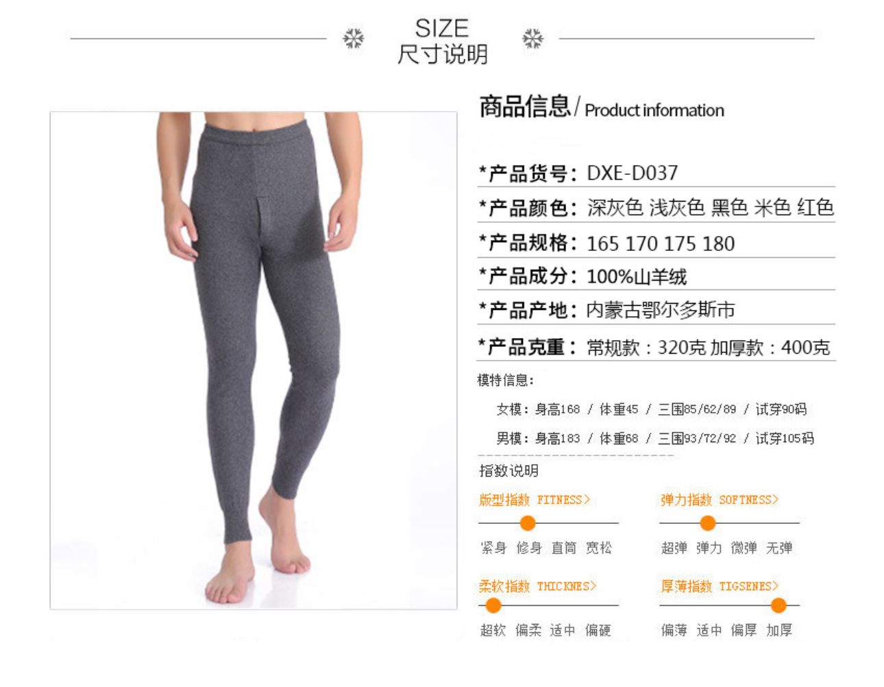 【 男款羊绒保暖裤】100%阿尔巴斯白山羊绒多个颜色可选 常规款和加厚款 无缝痕打底裤