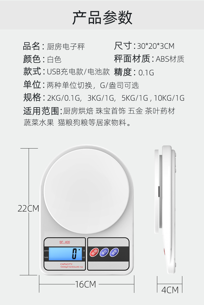 【精准称量 让做饭得心应手】尼本厨房秤 电子秤烘培 宝宝辅食称 家用10kg食物称小型克称电子称