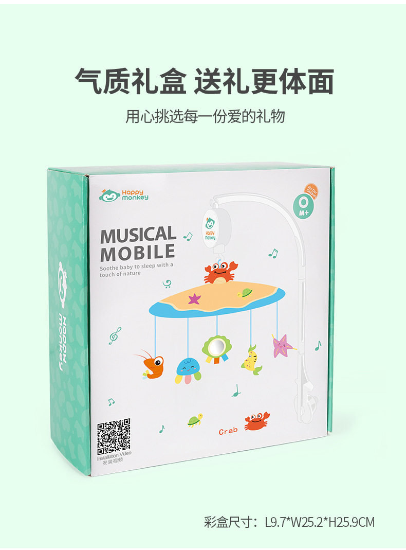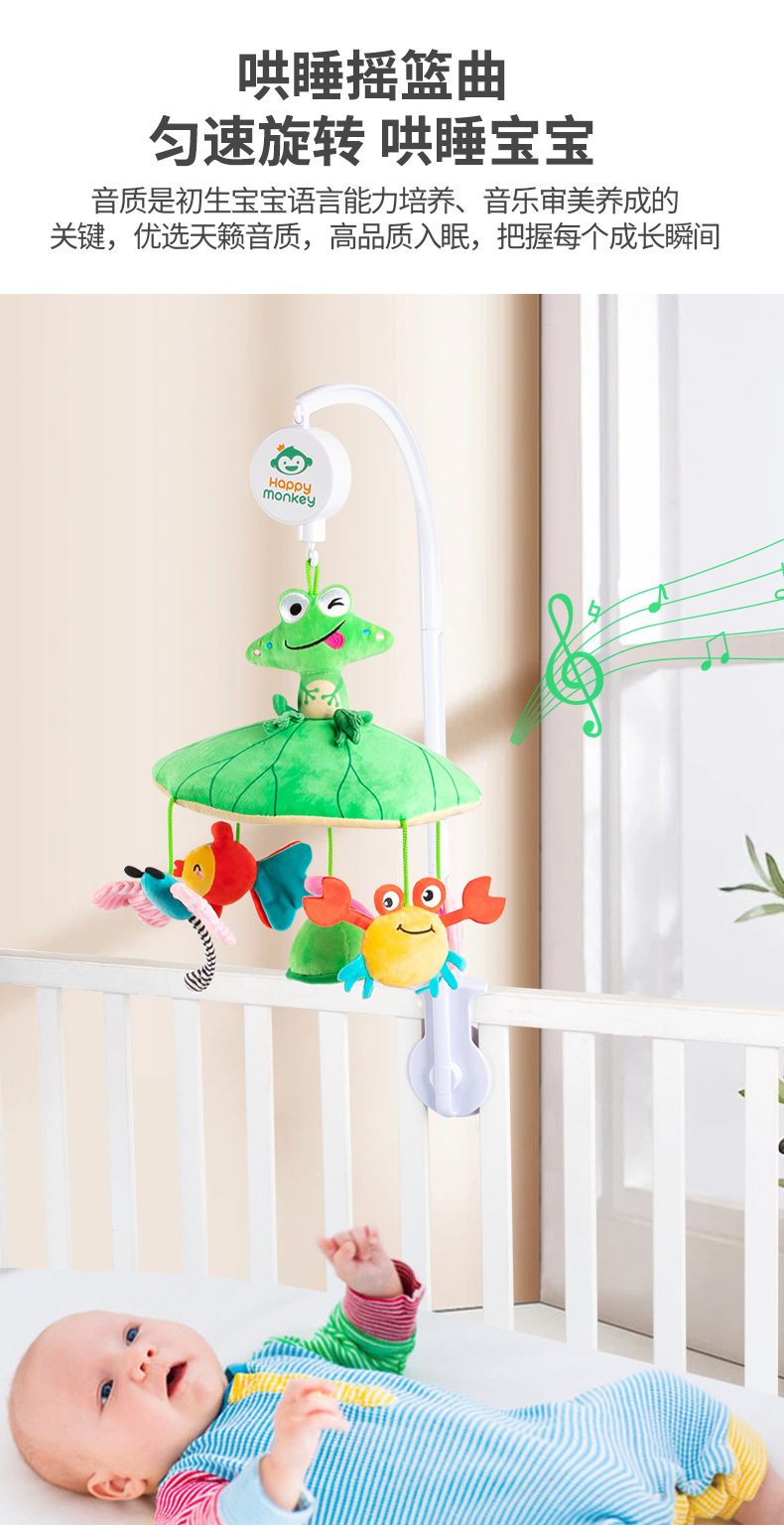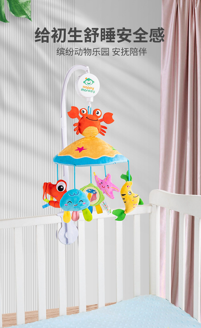Happy monkey新生儿音乐床铃可旋转婴儿玩具床头铃宝宝音乐转铃