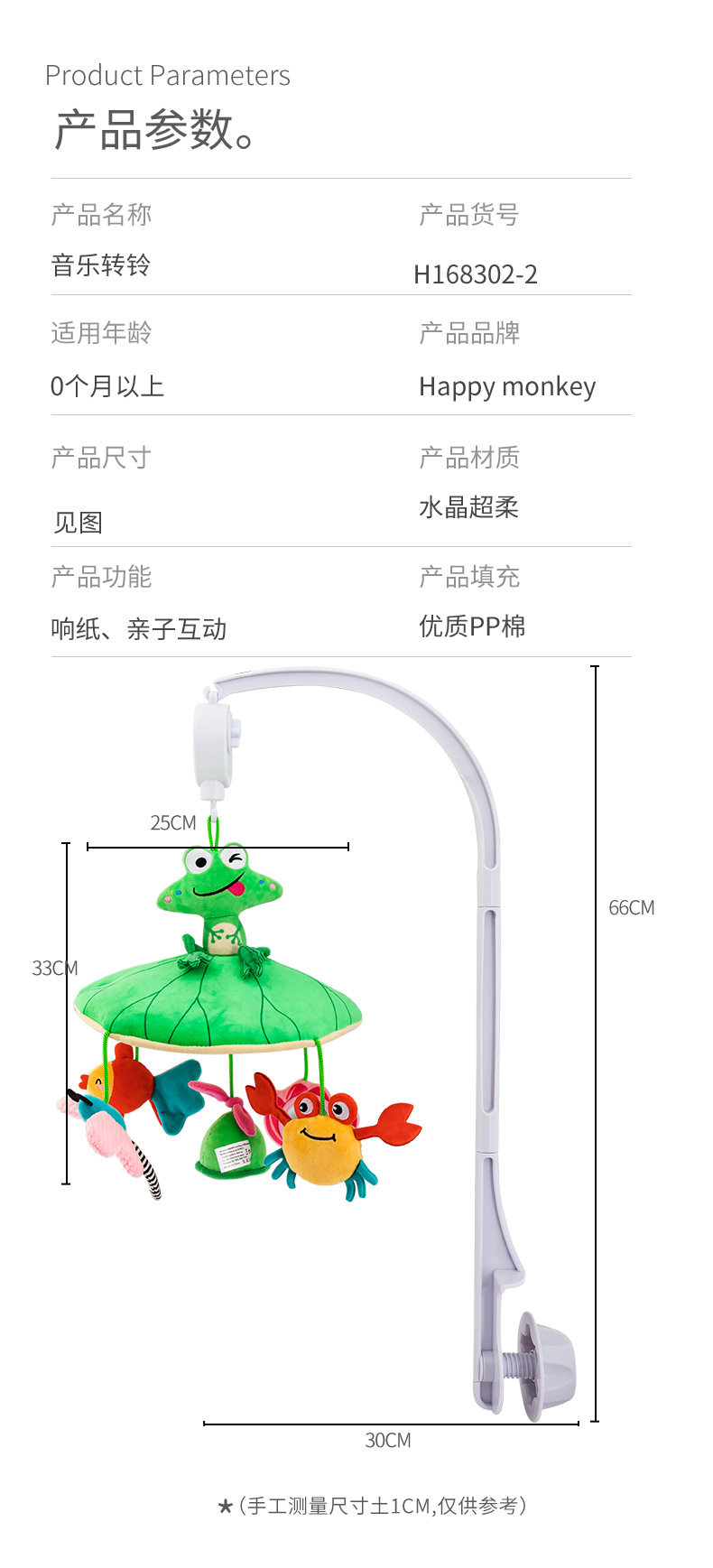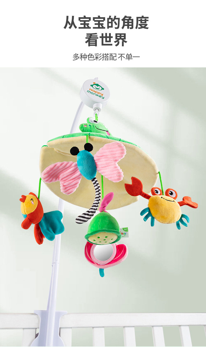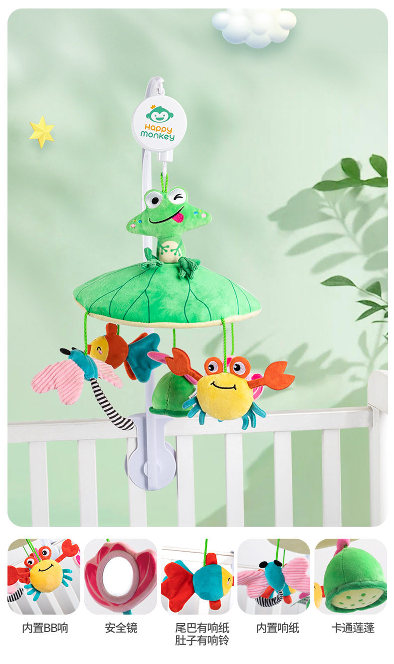 Happy monkey新生儿音乐床铃可旋转婴儿玩具床头铃宝宝音乐转铃