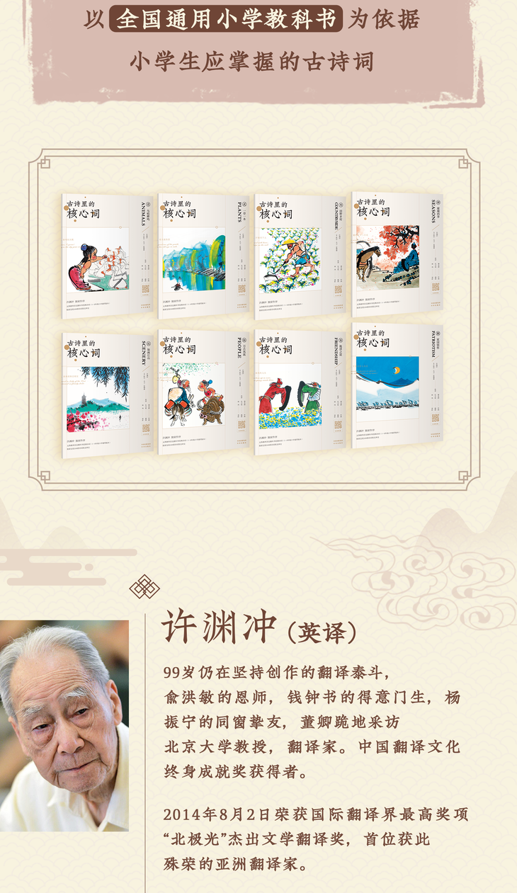 【古诗词读本】许渊冲《古诗里的核心词》百岁纪念版 (共8册)赠送小翻译家练习册